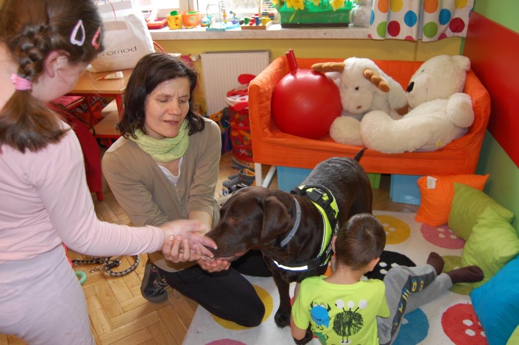Kalendarzowy początek wiosny już za nami. Dlatego postanowiłyśmy wspólnie z Boną odwiedzić uczniów szkoły podstawowej z SOSW dla Dzieci Niewidomych i Słabowidzących w Krakowie. Renia i Olaf mieli sposobność mocno poprzytulać tak dużego psa, jakim jest labrador oraz wydawać komendy. Nasza czekoladowa labradorka Bona, zwykle wykonuje zadania bardzo chętnie, ponieważ wie, że zawsze czeka na nią pyszna nagroda 🙂
