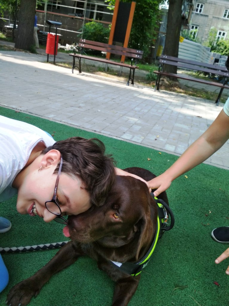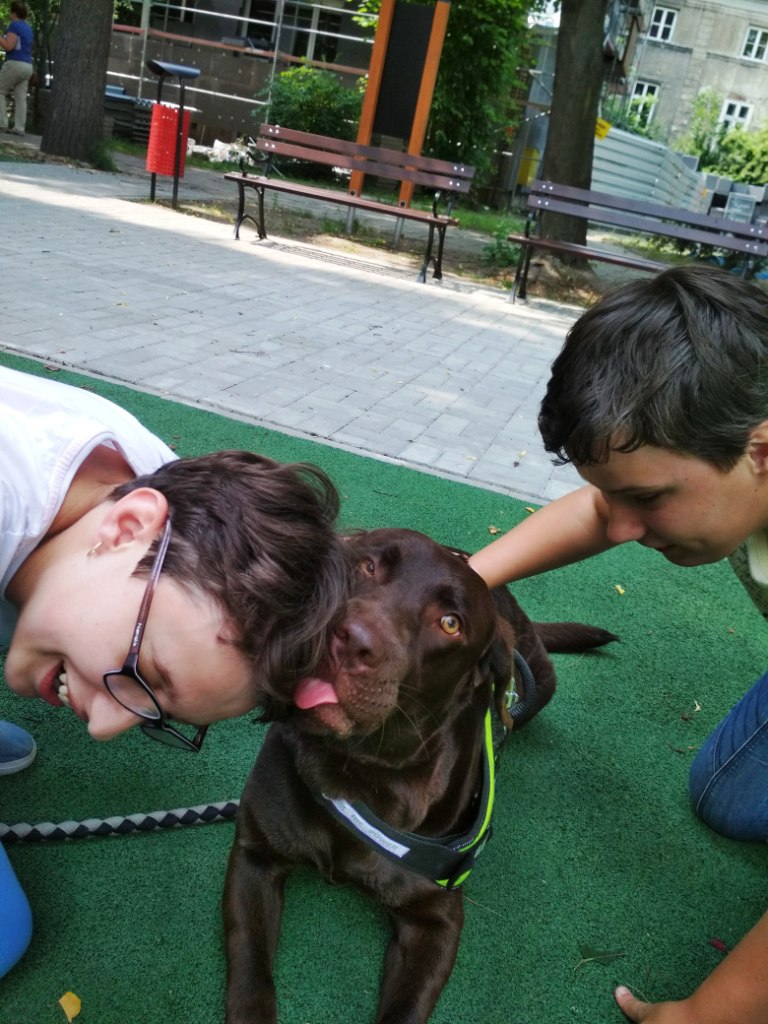 Dnia 4 czerwca 2018 roku Bona ponownie gościła w Ośrodku przy Tynieckiej, gdzie tym razem spotkała się z Justynką, Olą, Olafkiem oraz Renią. Ponieważ był to piękny, ciepły dzień – zajęcia odbyły się na zewnątrz budynku. Dzieci ochoczo przytulały psiaka a Bona odwzajemniała się wylizywaniem śmiejących się buziek oraz zajadaniem psich przysmaków.