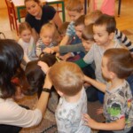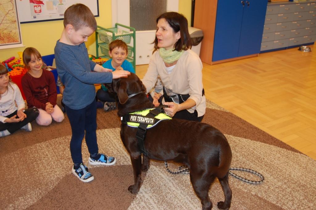 Bona wraz ze swoją właścicielką odwiedziła dzieciaki z grupy VI w Samorządowym Przedszkolu nr 2 w Krakowie. Przedszkolaki miały możliwość porównać budowę ciała psa z ludzkim, głaskać, karmić czy wydawać komendy. Bona w zamian za “smaczki” pokazywała liczne swoje umiejętności.