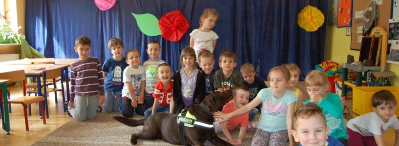 W czwartek odwiedziliśmy dzieciaki ze Specjalnego Ośrodka Szkolno-Wychowawczego dla Dzieci Niewidomych i Słabowidzących : Gabrysię i Olafa. Podczas zajęć dzieci bawiły się z Boną karmiąc ją i rzucając jej piłkę. Przede wszystkim jednak przytulały się do niej, głaskały a ona odwdzięczyła się im wylizywaniem ich rąk twarzy. Zabawa była przednia! Następne spotkanie prawdopodobnie odbędzie się […]