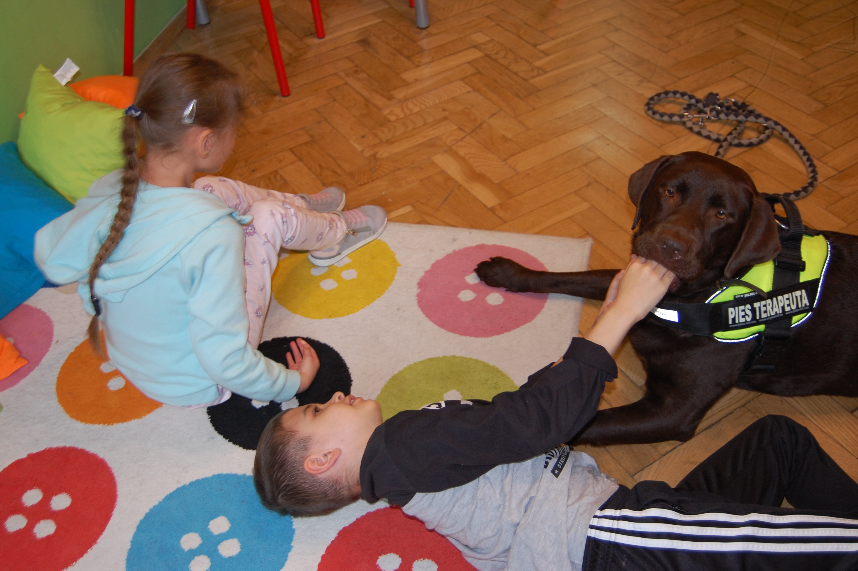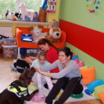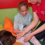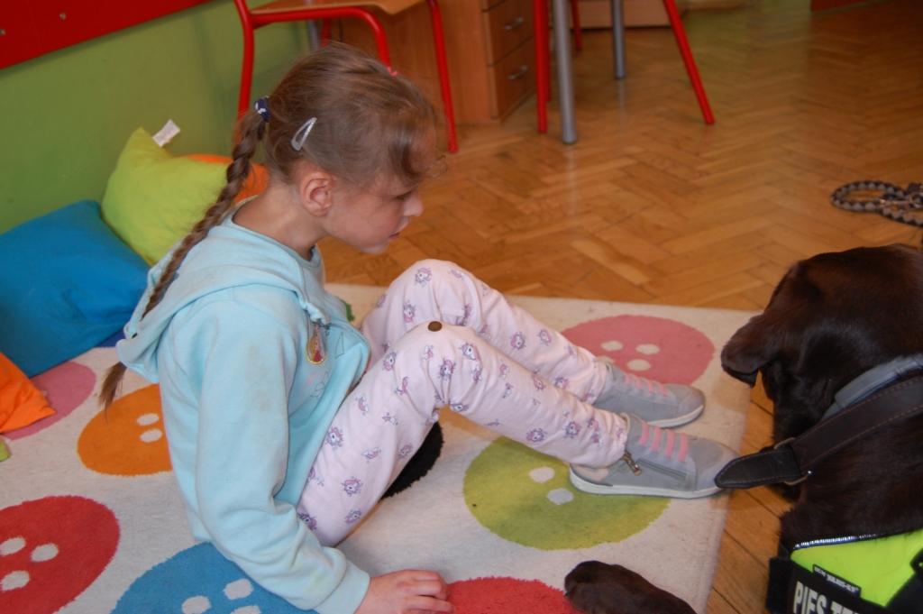 Podczas zajęć dzieci bawiły się z Boną karmiąc ją i rzucając jej piłkę. Przede wszystkim jednak przytulały się do niej, głaskały a ona odwdzięczyła się im wylizywaniem ich rąk twarzy. Zabawa była przednia!