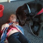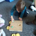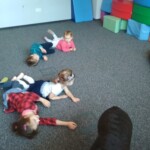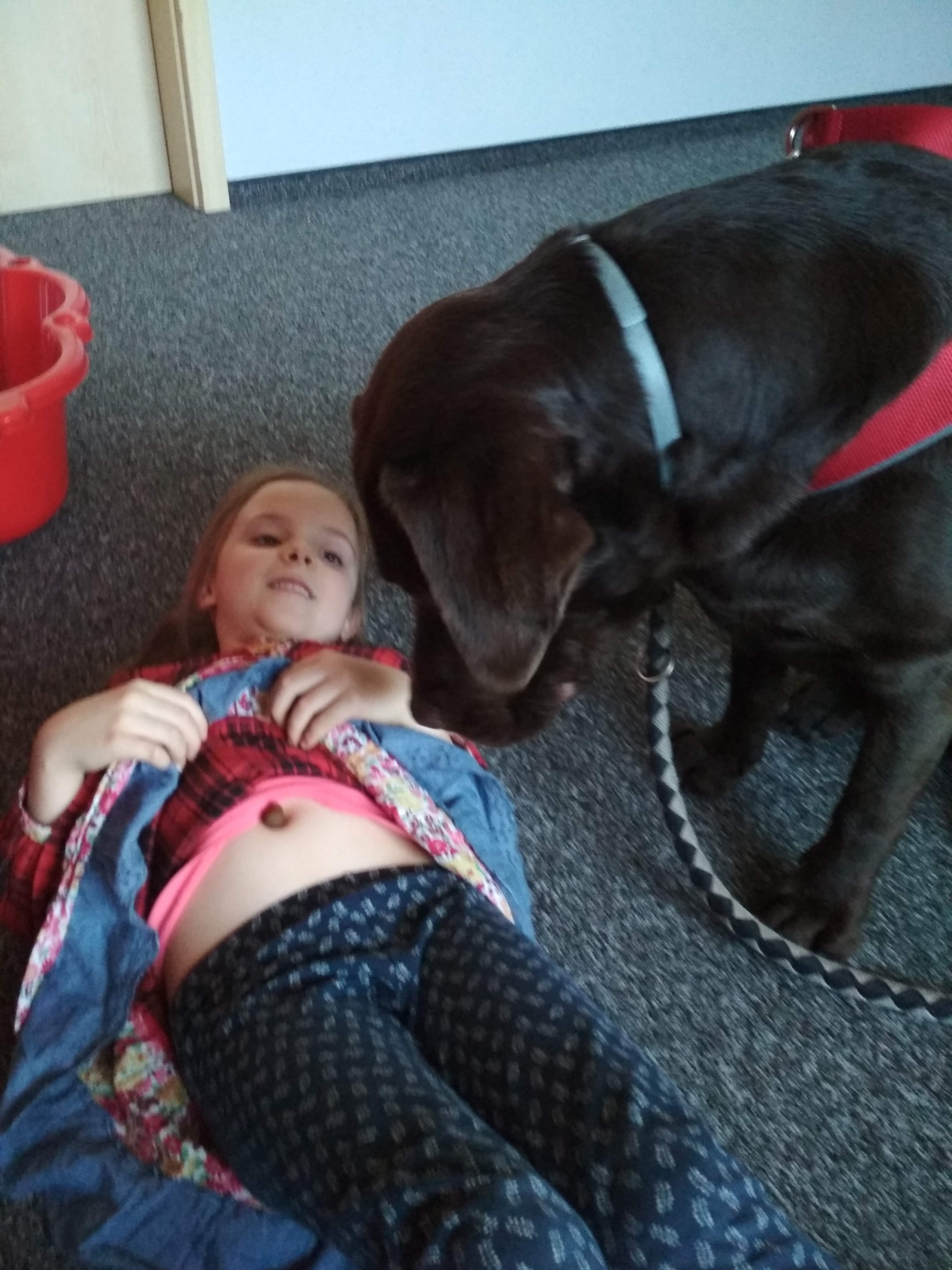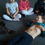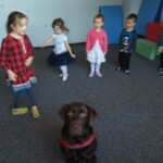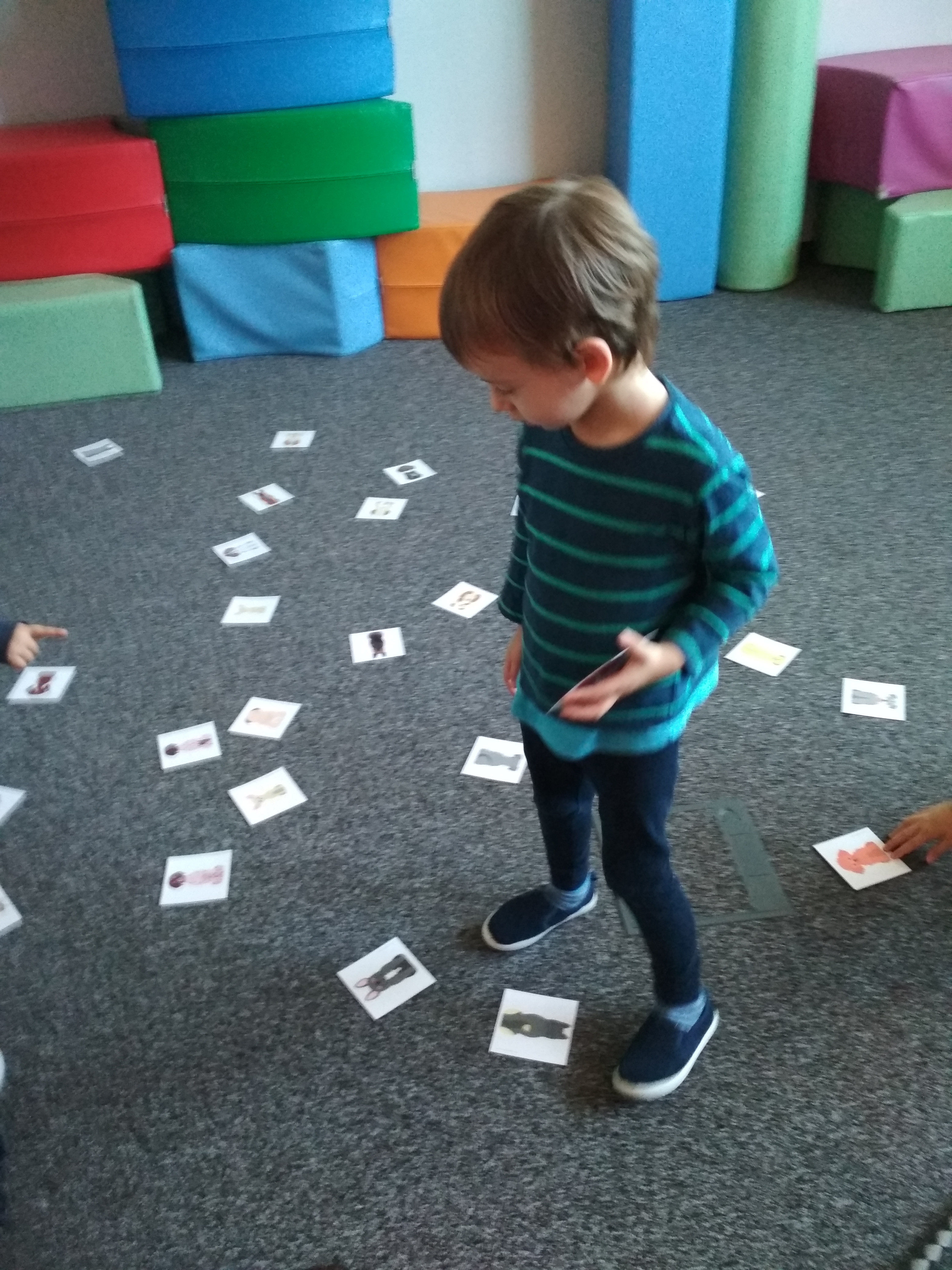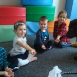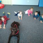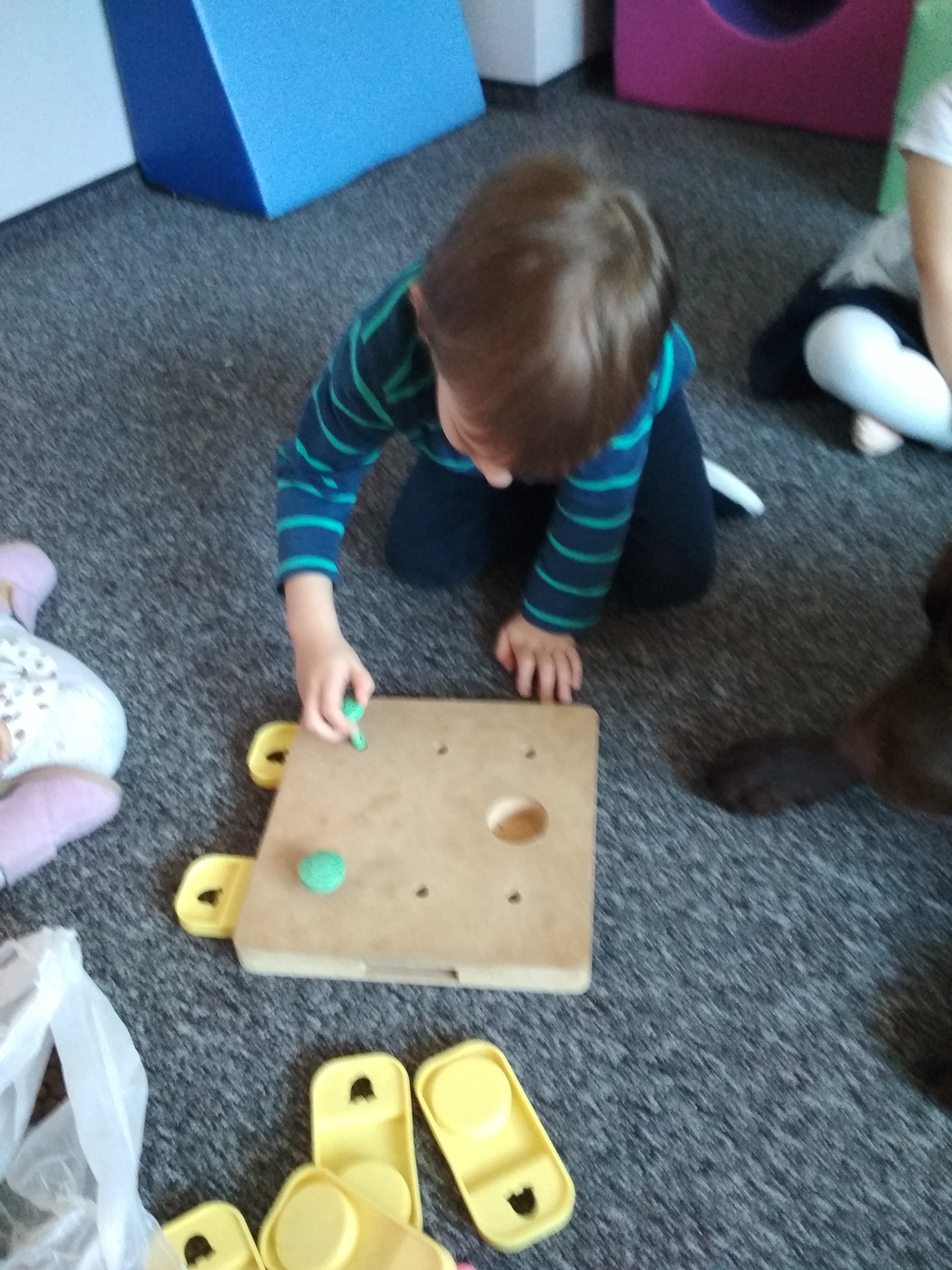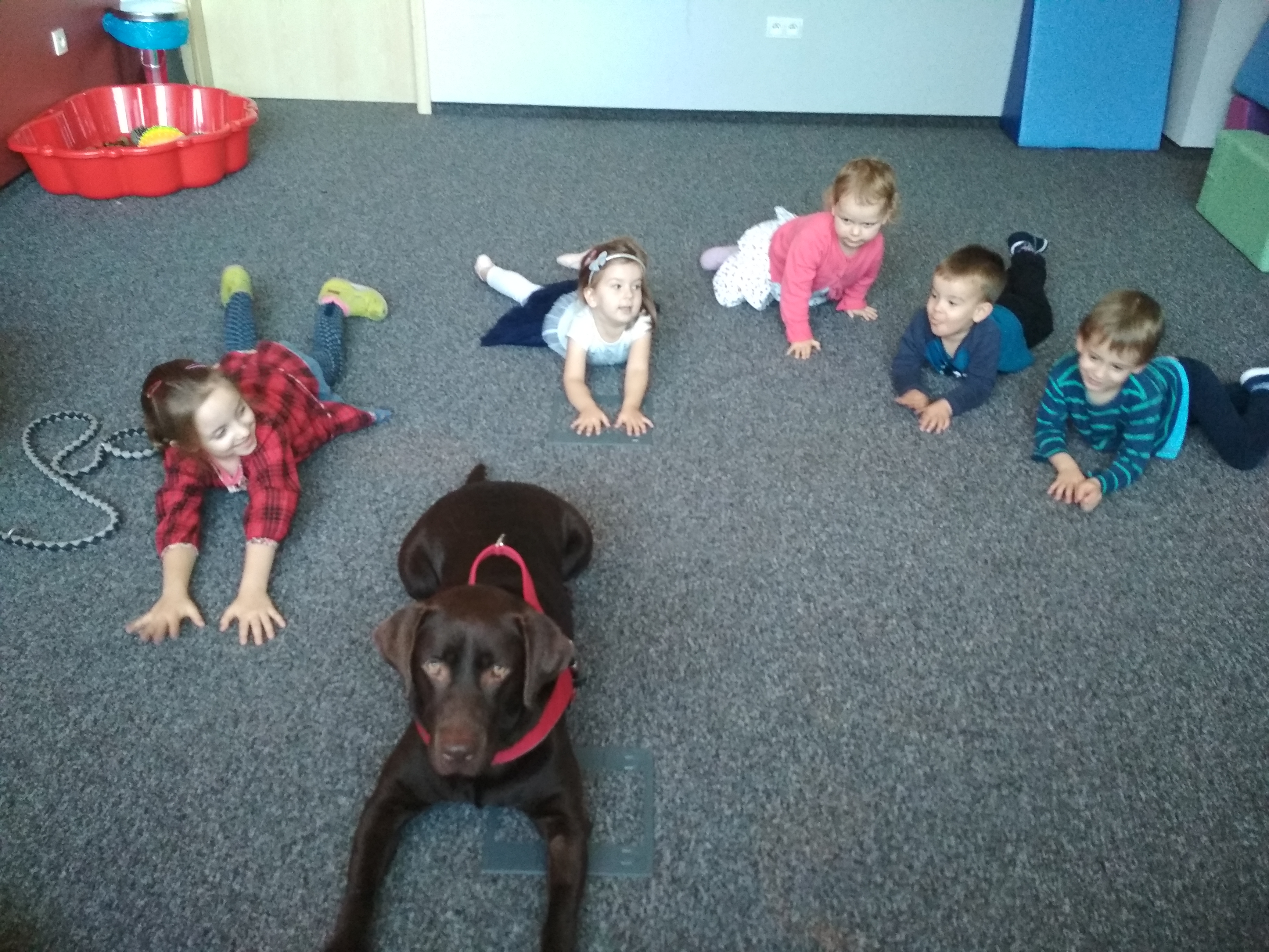 Podczas zajęć dzieci w wieku od 3 do 6 lat oswajały się z obecnością psa (całkiem dużego). Jak to zwykle bywa przy tego typu zajęciach, Bona została wygłaskana, nakarmiona oraz wspólnie z dzieciakami grała w psią „grę planszową”. Zabawa była przednia!