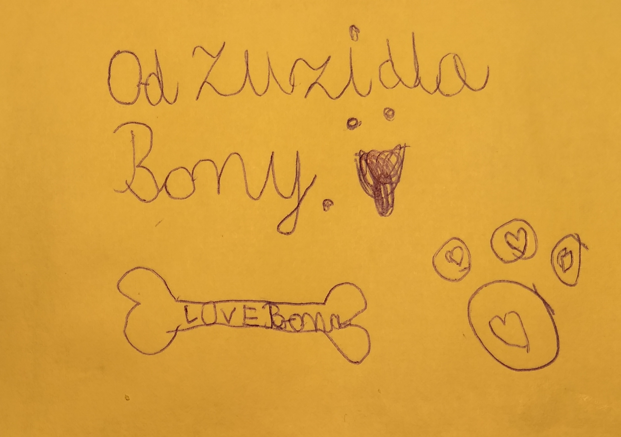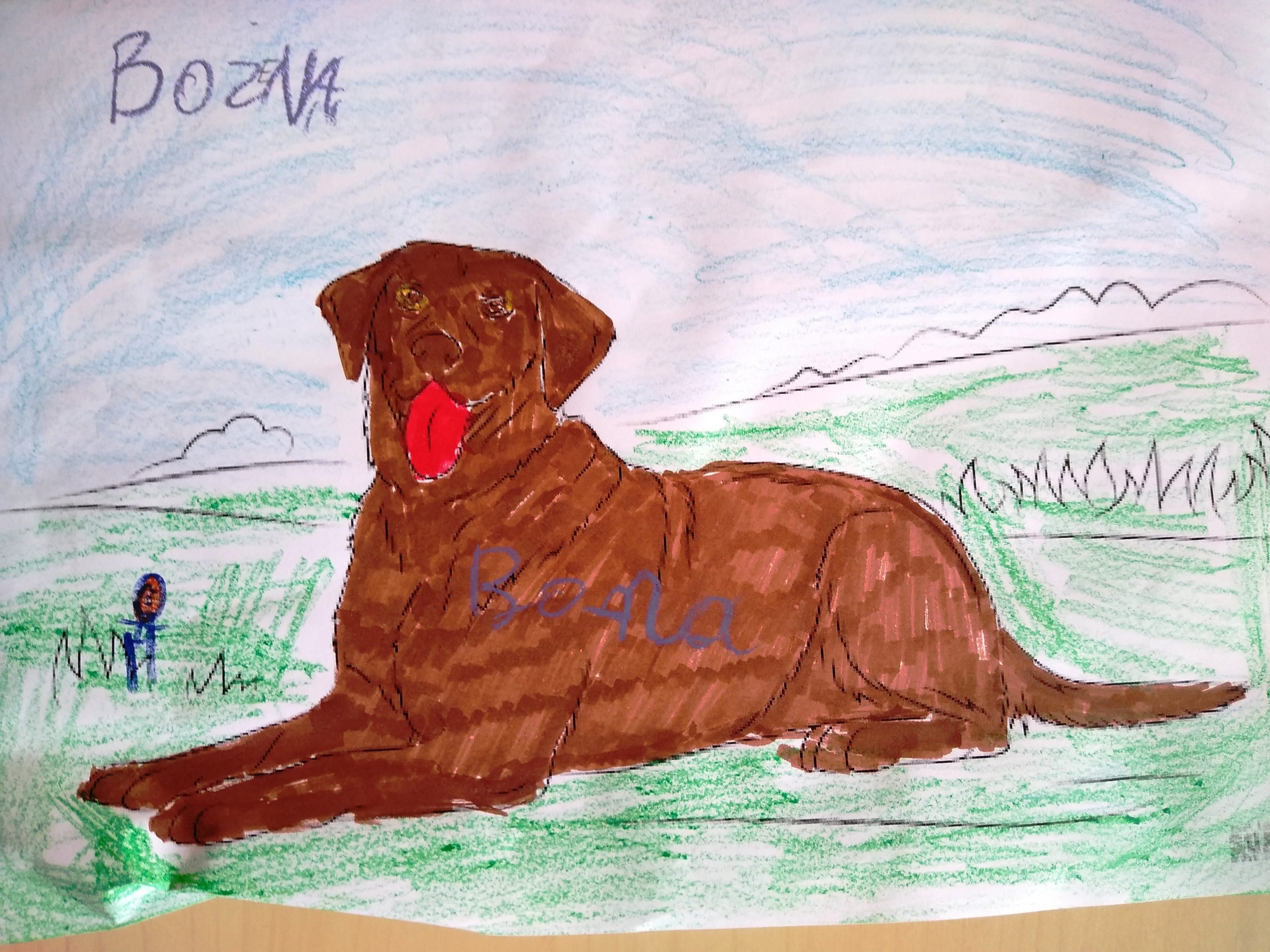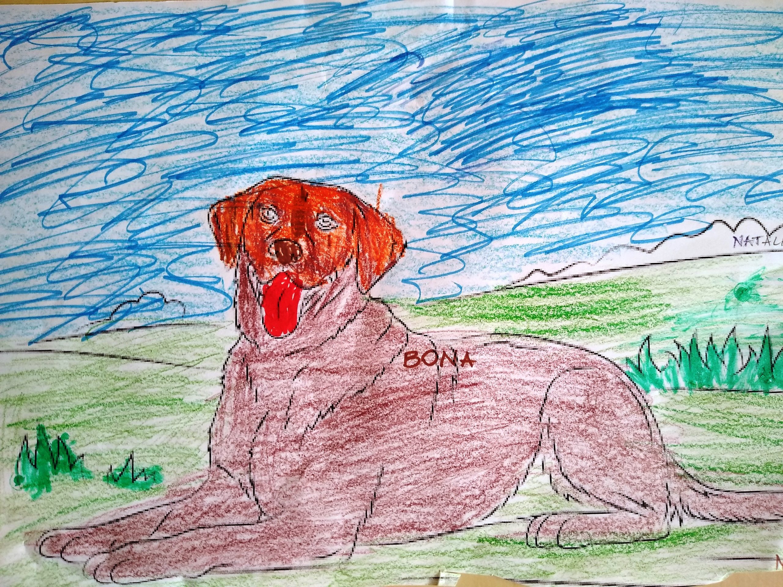 20 września 2020 r. nasz Bona obchodziła swoje 4 urodziny. W ramach prezentów urodzinowych ale i tych spontanicznych otrzymała od dzieciaków liczne jej portrety. Oto one: