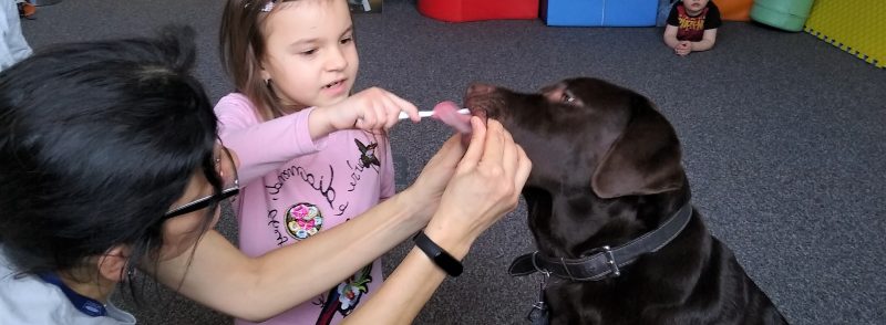 Aby utrwalić u naszych dzieci podstawowe zasady higieny, jak np. mycie rąk, mycie zębów czy czesanie się, wykorzystać można psa. Nasza Bona okazała się być dzielną modelką, która cierpliwie znosiła szczotkowanie zębów oraz w ramach pielęgnacji sierści – czesanie. Tego typu zajęcia pozwalają przełamać lęk przed psem z jednoczesnym oswajaniem się z jego bliskością.