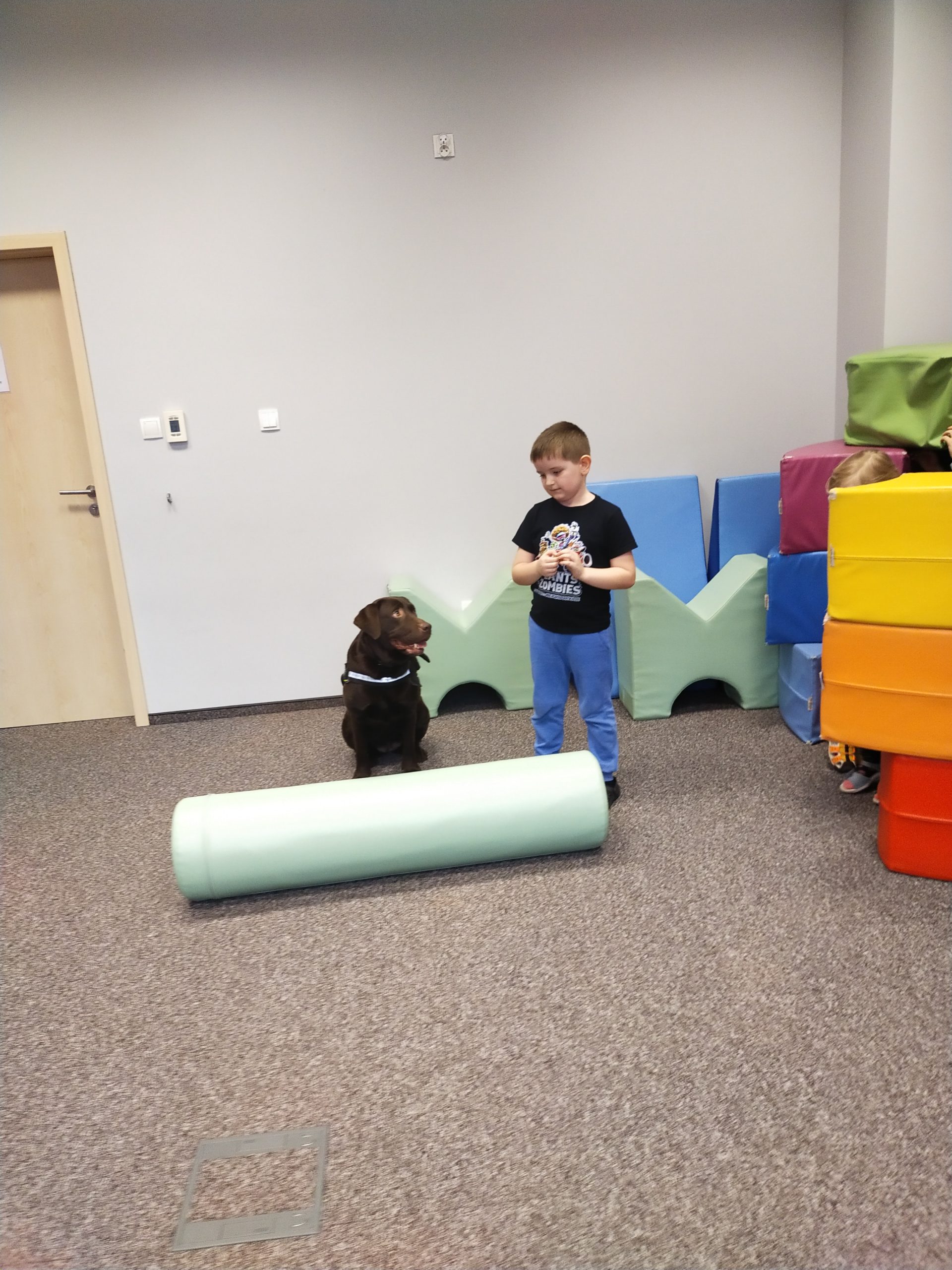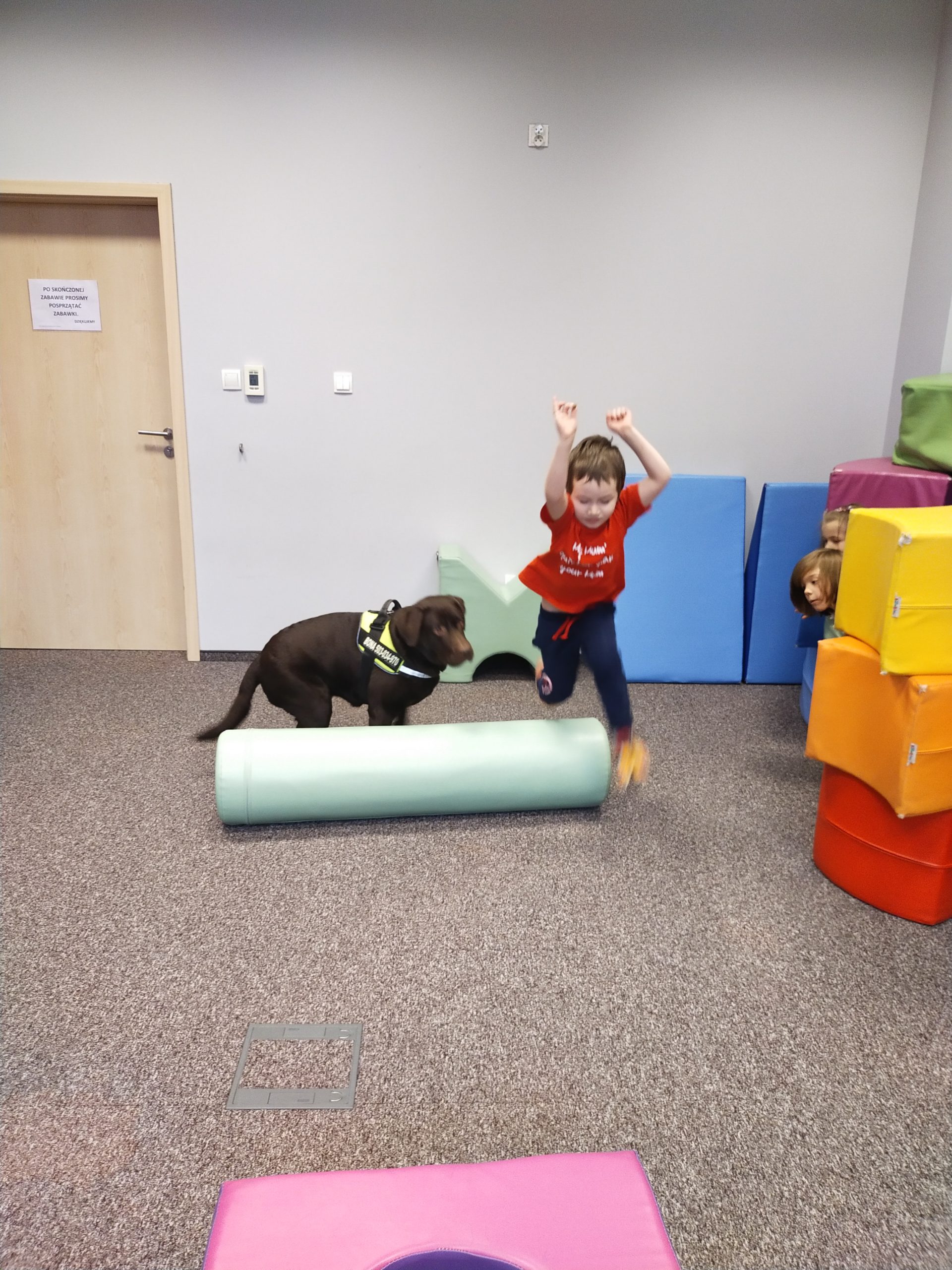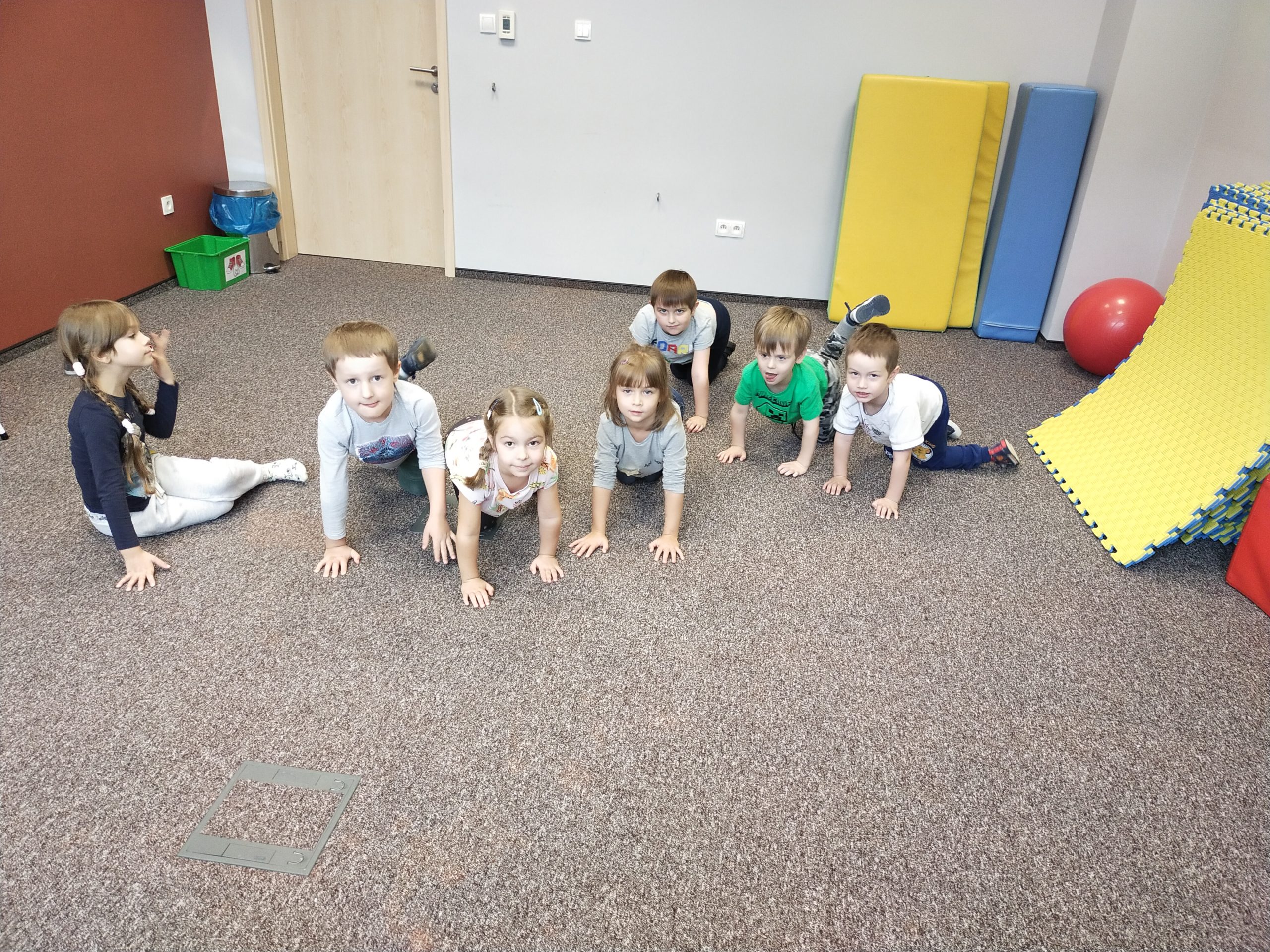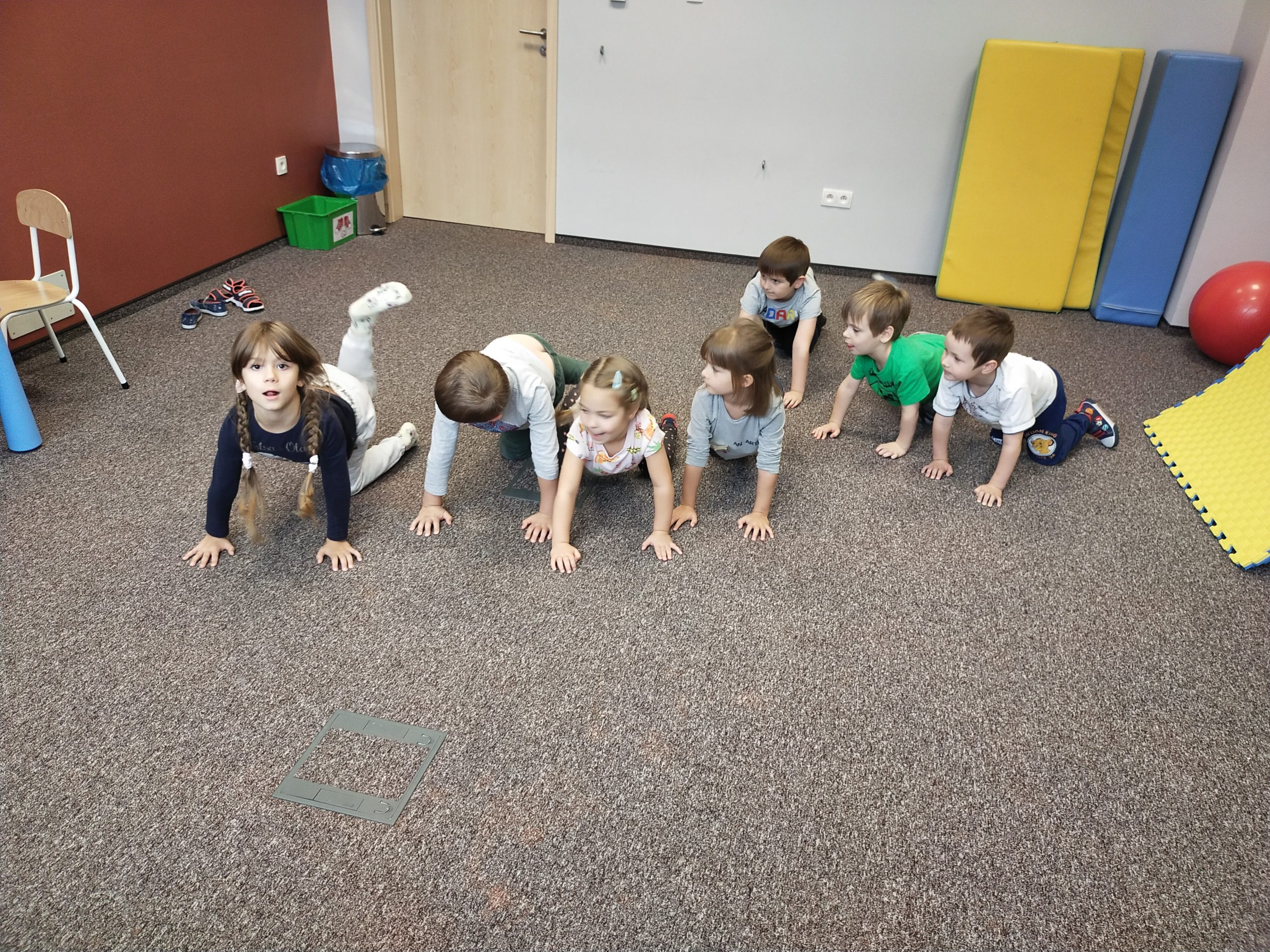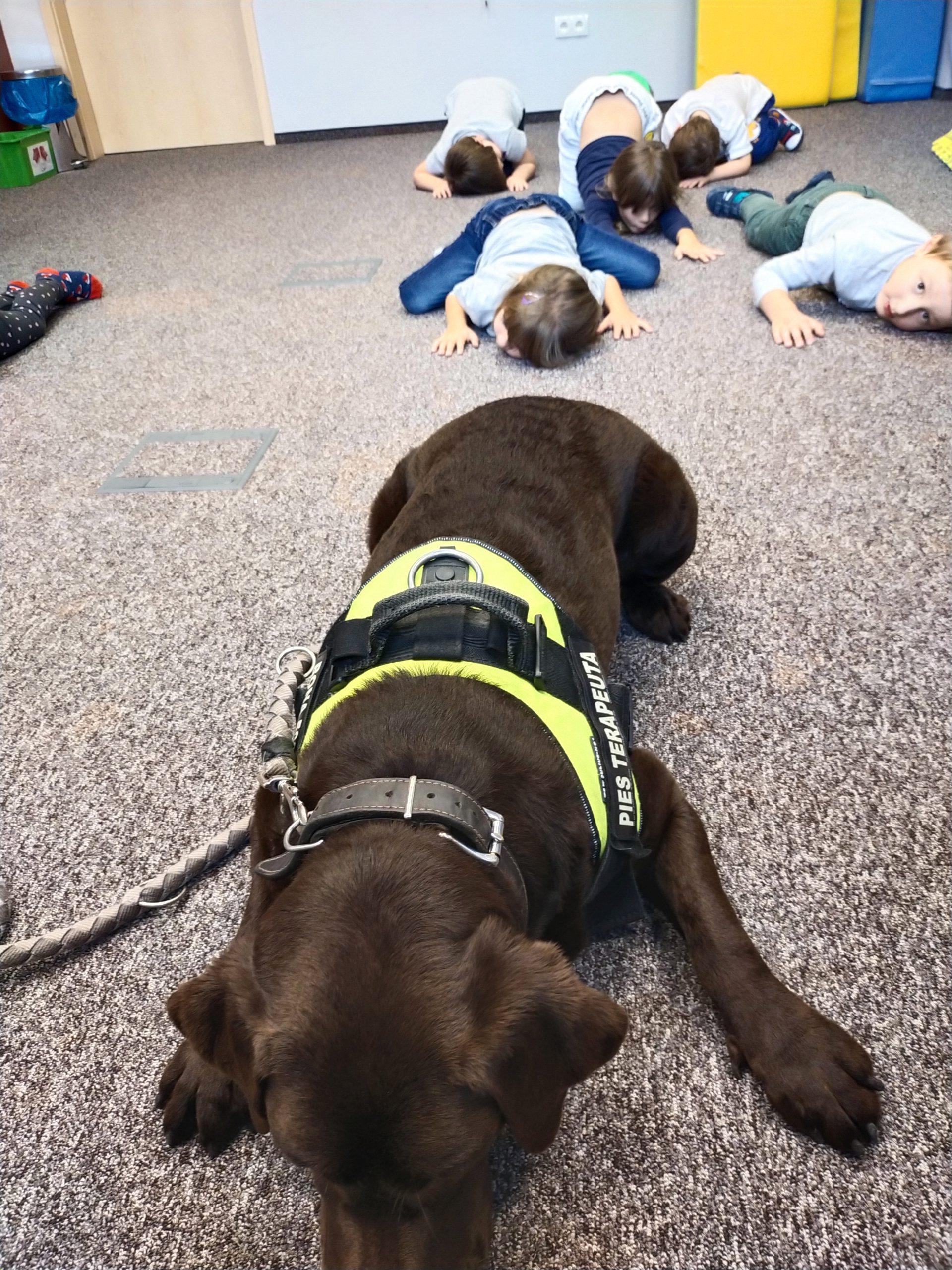 Nasze zajęcia nie mogą być nudne. Dlatego, za każdym razem robimy coś nowego, np.: :zrób to co pies”, czyli gimnastykujemy się z Boną.