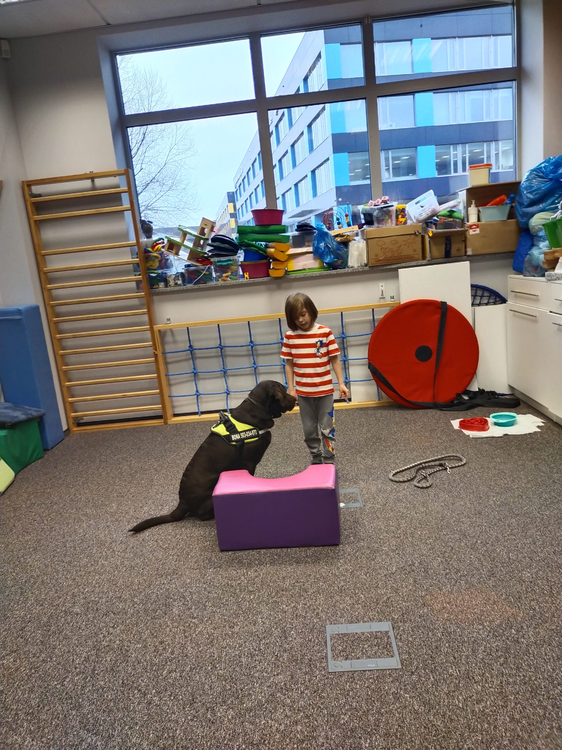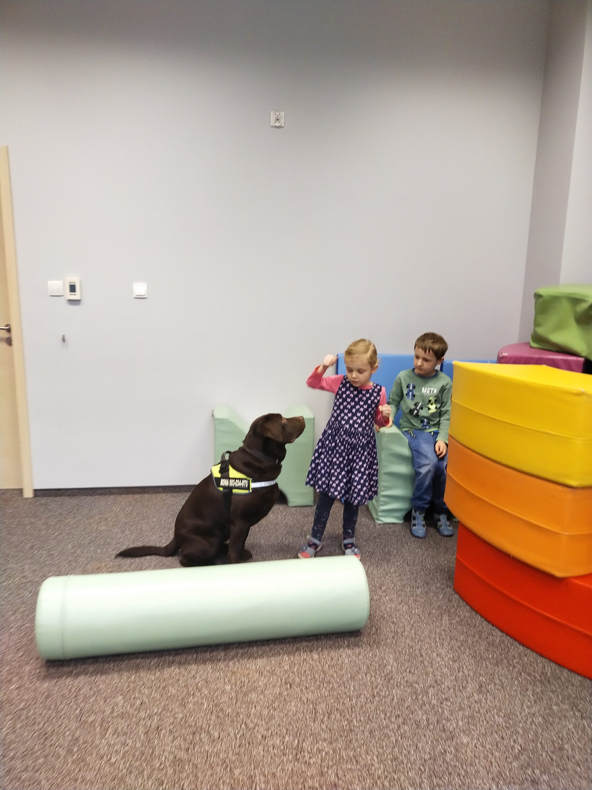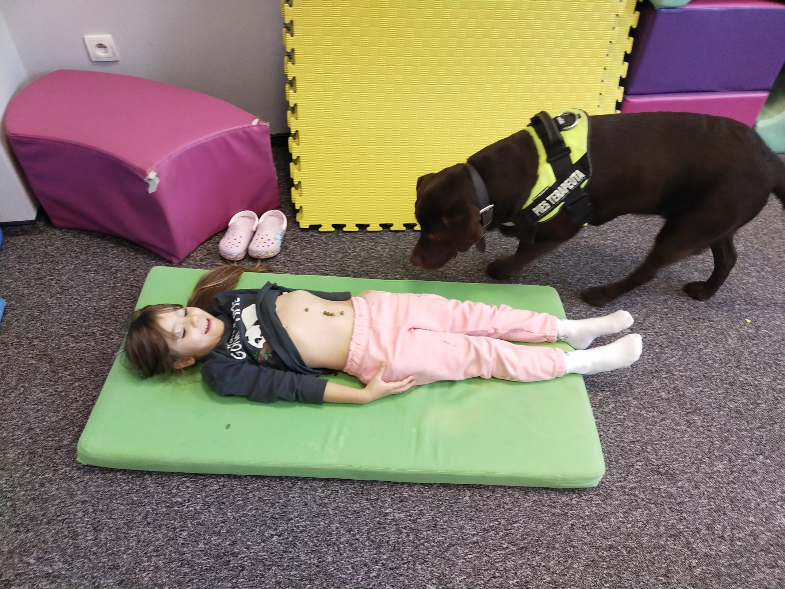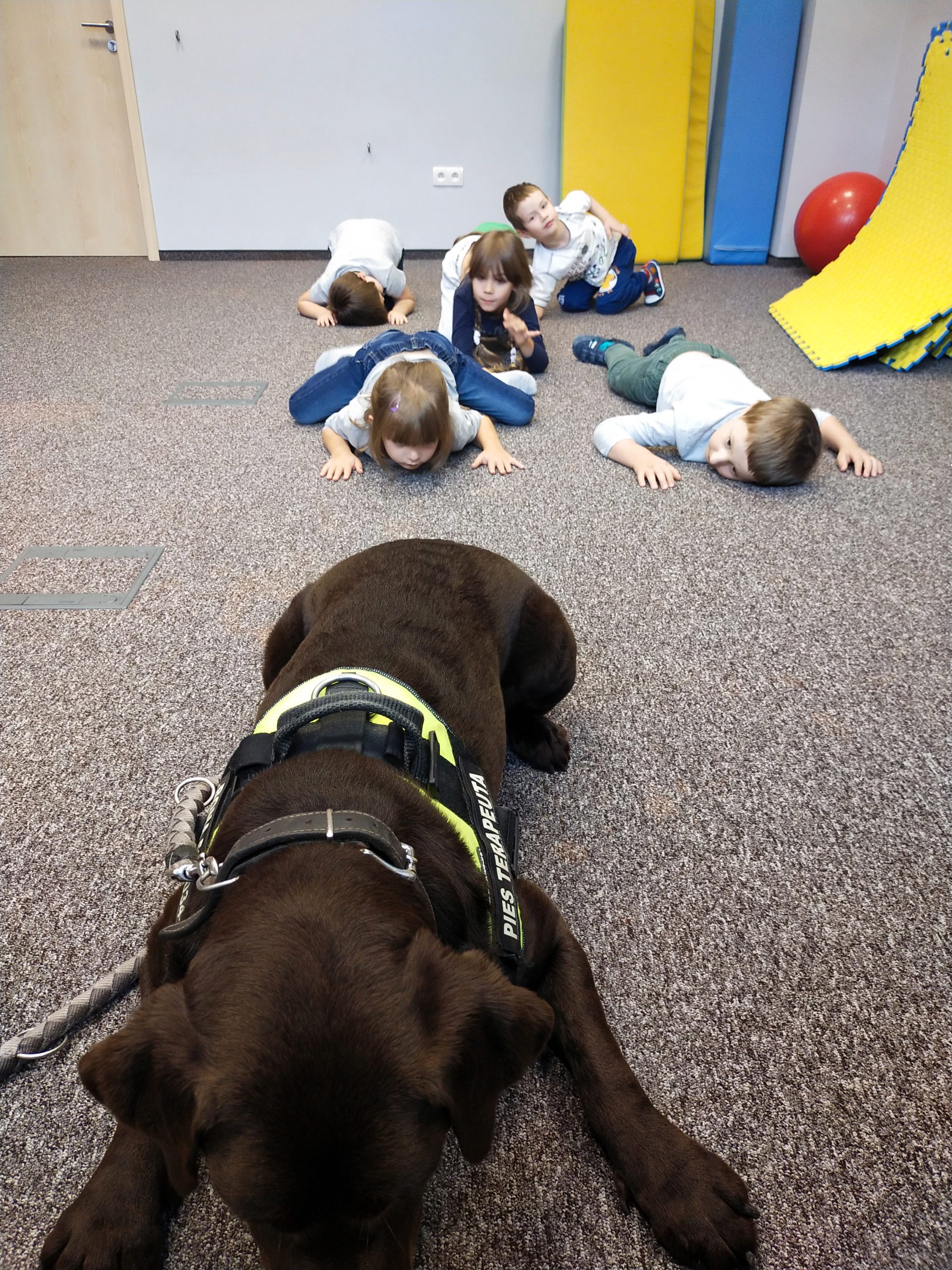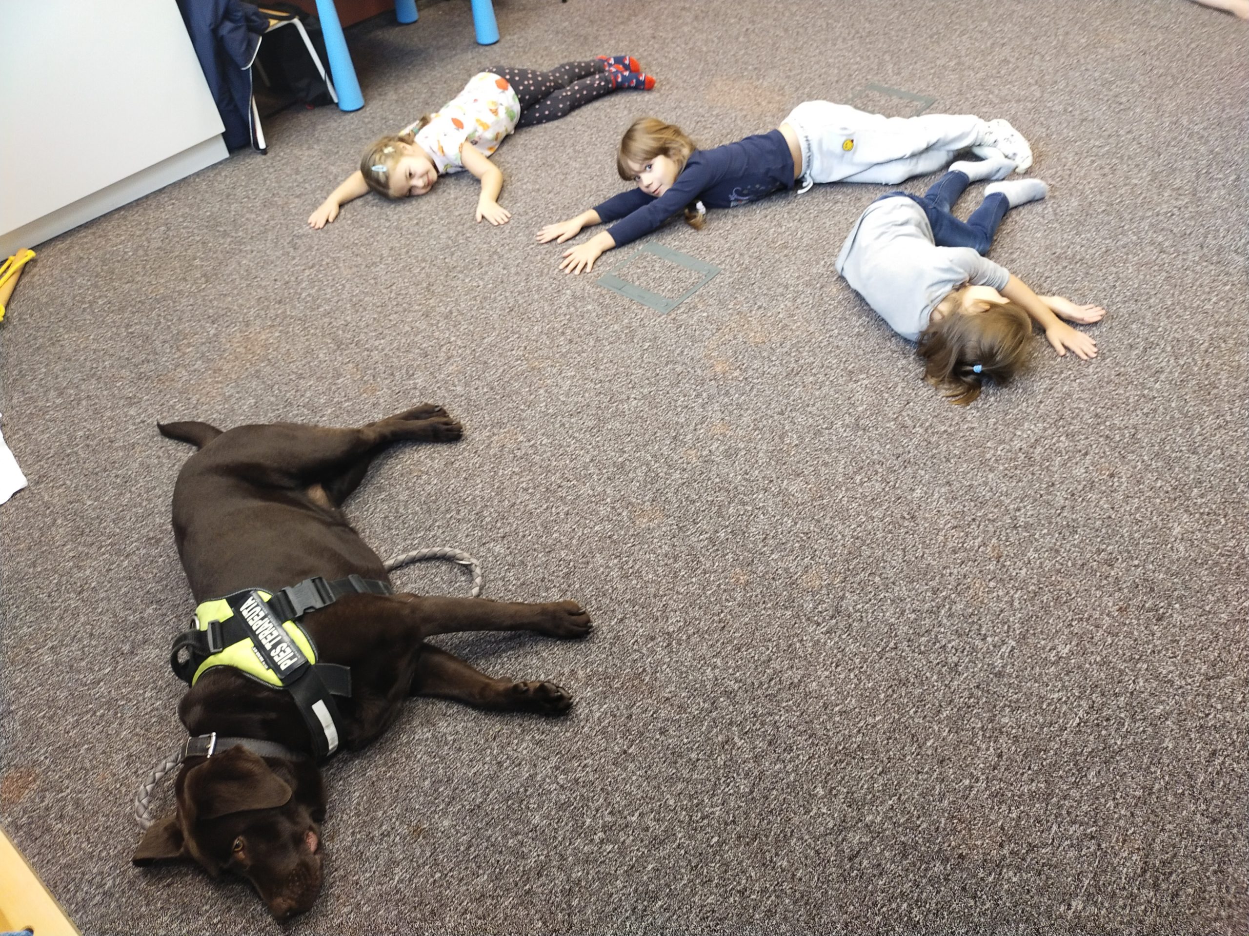 Nasze zajęcia nie mogą być nudne. Dlatego, za każdym razem robimy coś nowego, np.: :zrób to co pies”, czyli gimnastykujemy się z Boną.
