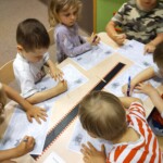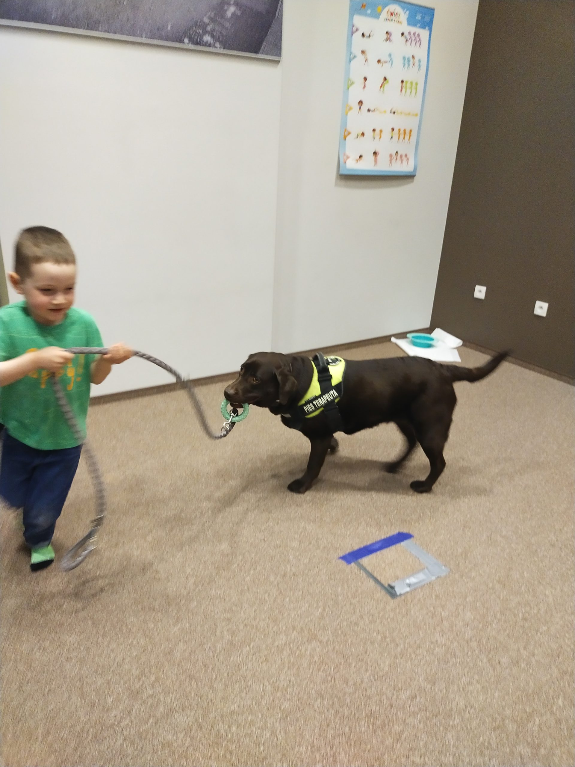 Nasze zajęcia prowadzone są najczęściej dla dzieciaków w wieku przedszkolnym. Pomagamy m oswajać się z obecnością psa. Nie zawsze dzieci wykonują powierzone im zadania bezpośrednio z psem. Czasami pies jest elementem “wystroju” sali, cichutko sobie leży i nie bierze bezpośredniego udziału w danym zadaniu ale jest istotnym elementem, wspierającym nasze działania. Dzieci w tym czasie grają w różne gry, rysują, rozwiązują rebusy, rysują. Ale pies – Bona przy nich jest i staje staje się “elementem wyposażenia sali” – nie trzeba się go bać. Gdy są już oswojone z jego obecnością, są w stanie biegać i grać aktywnie z psem.