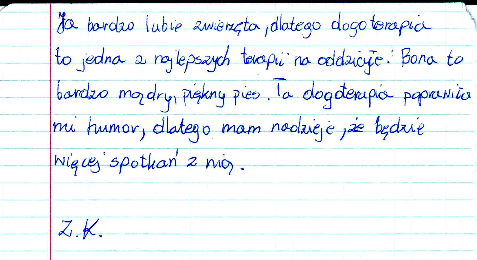 Nasze zajęcia z Boną to nie tylko „głaskanie i przytulanie” pieska w przedszkolach, czy żłobkach. Jest to również realna pomoc osobom borykającym się z różnorakimi problemami, przebywającymi w szpitalach.