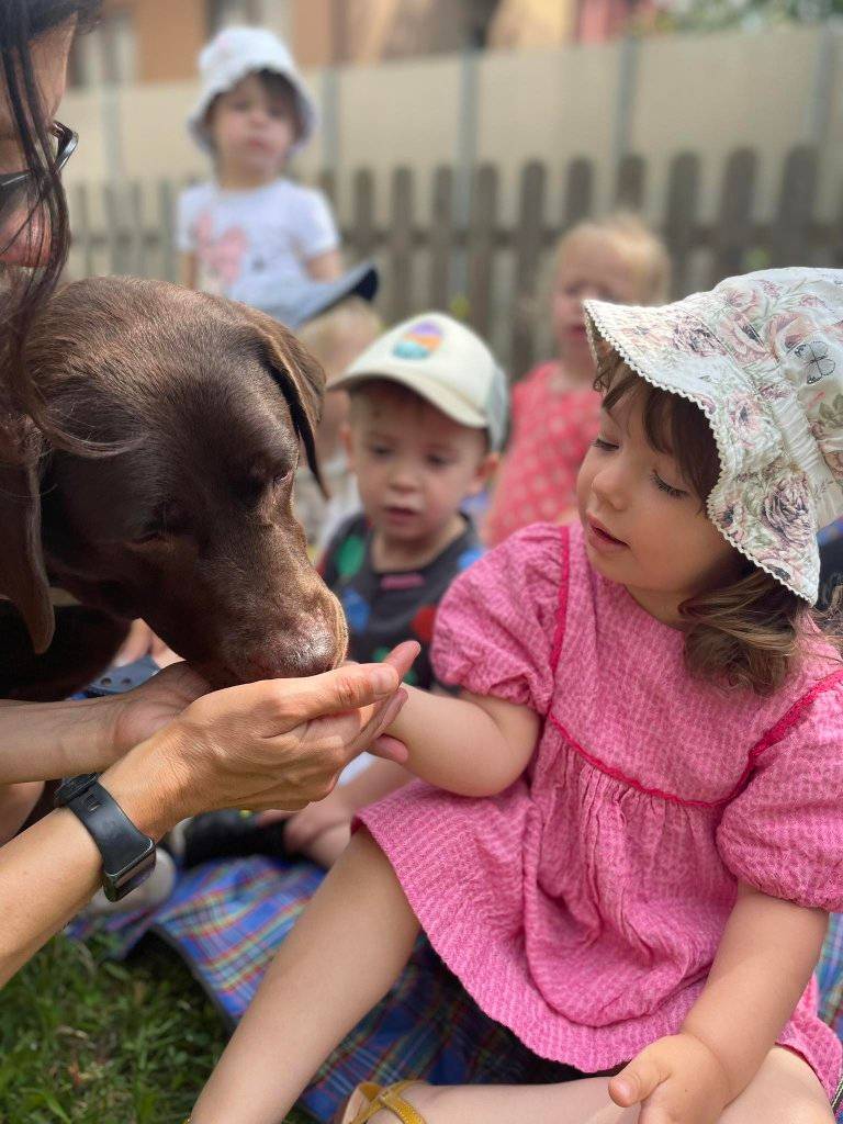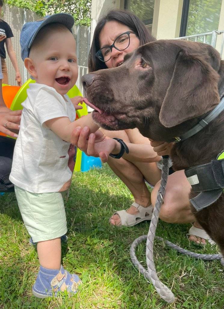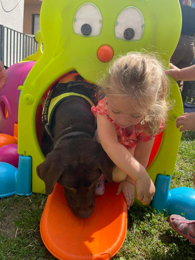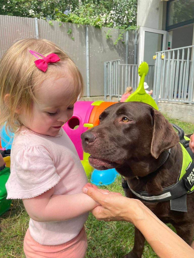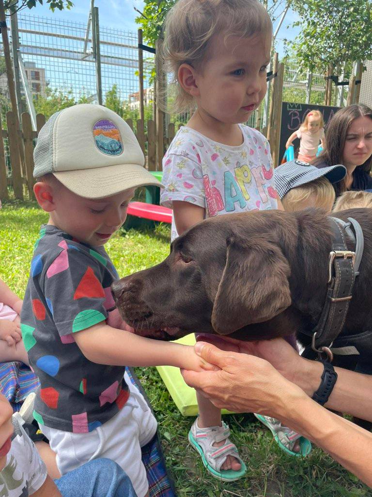 Kolejne zajęcia Dogoterapia Psiejskoczarodziejsko. w Żłobku Zabawa odbyły się w plenerze “na zielonej trawce” dnia 10 lipca 2023.
