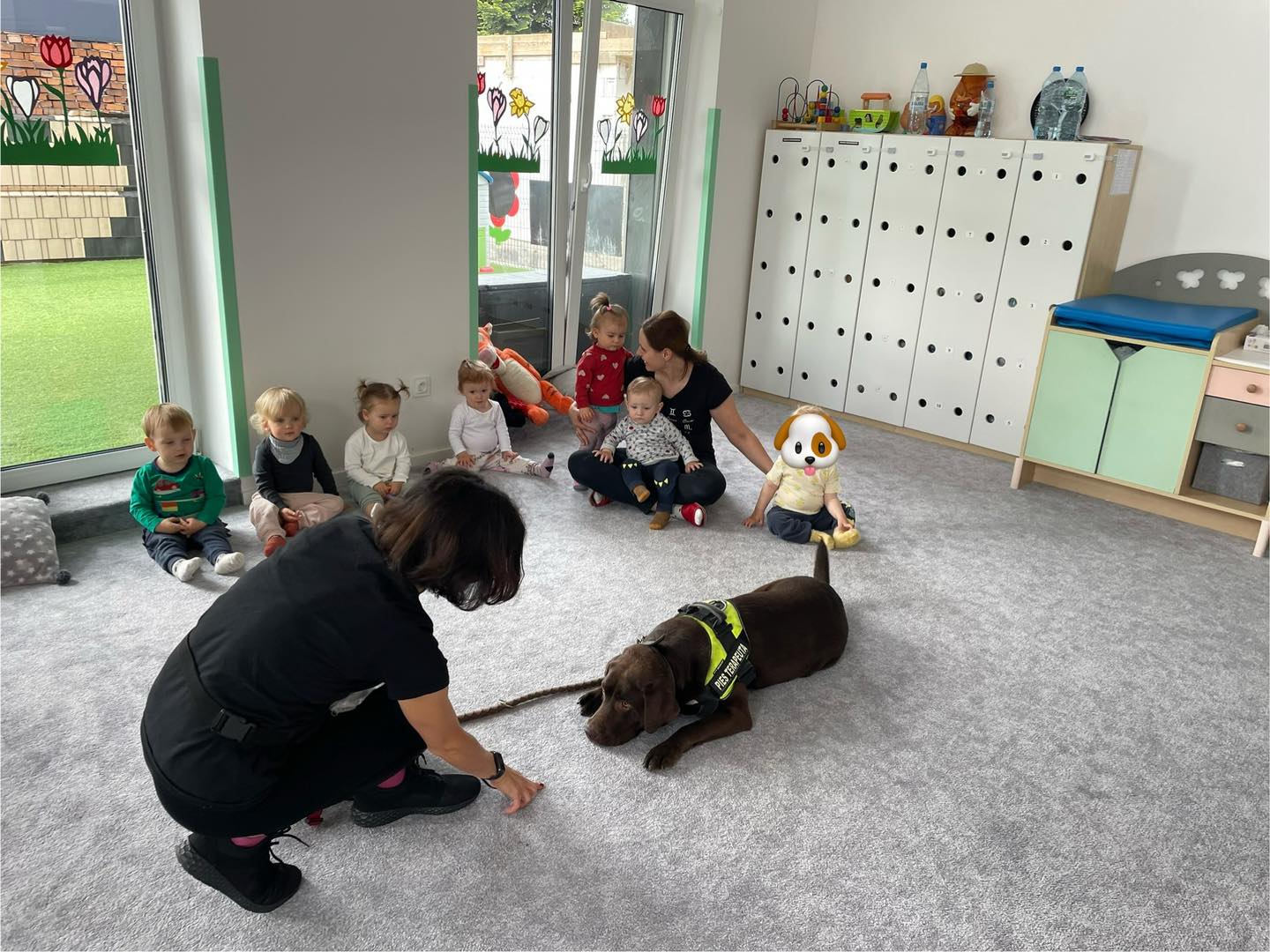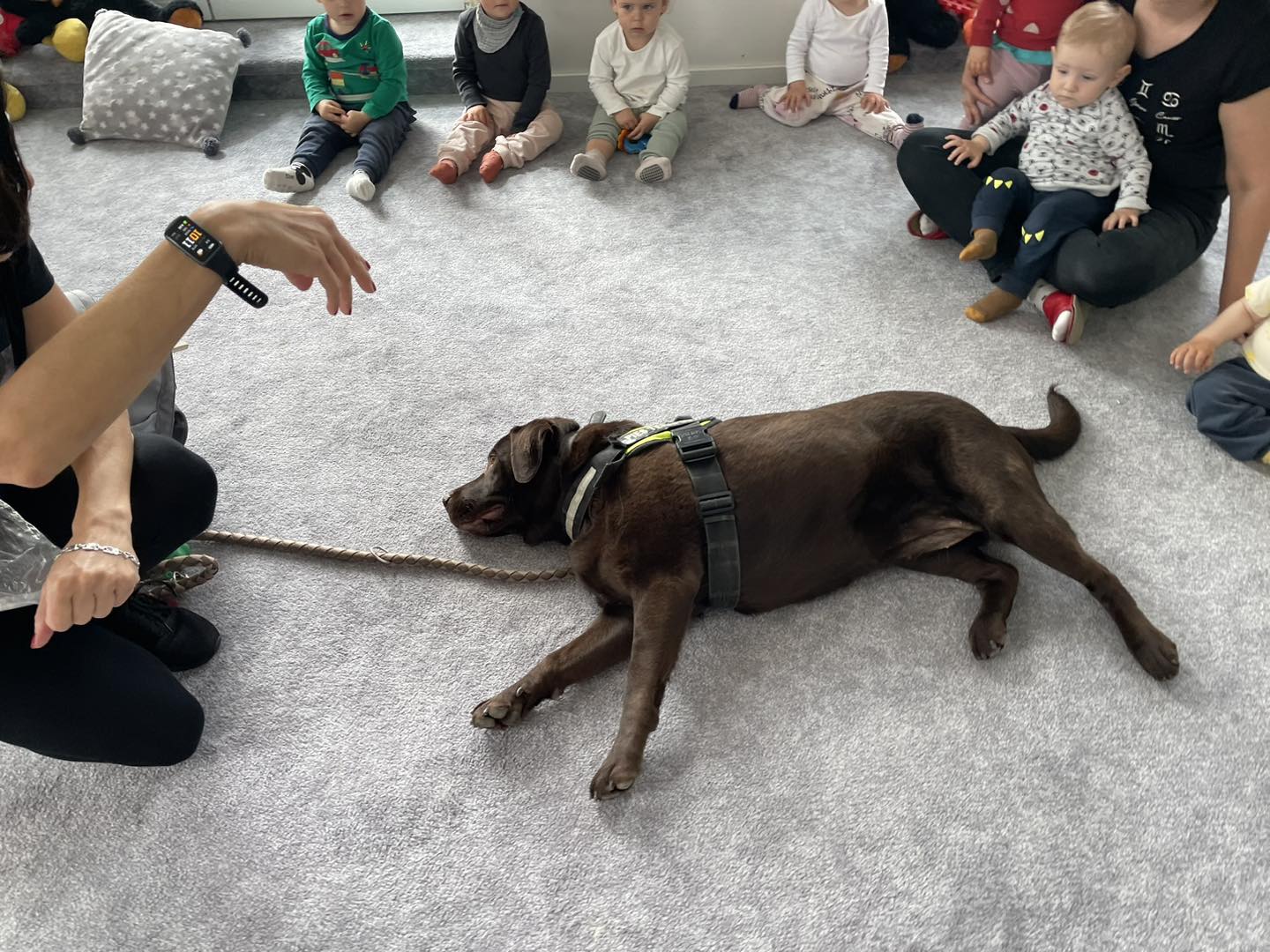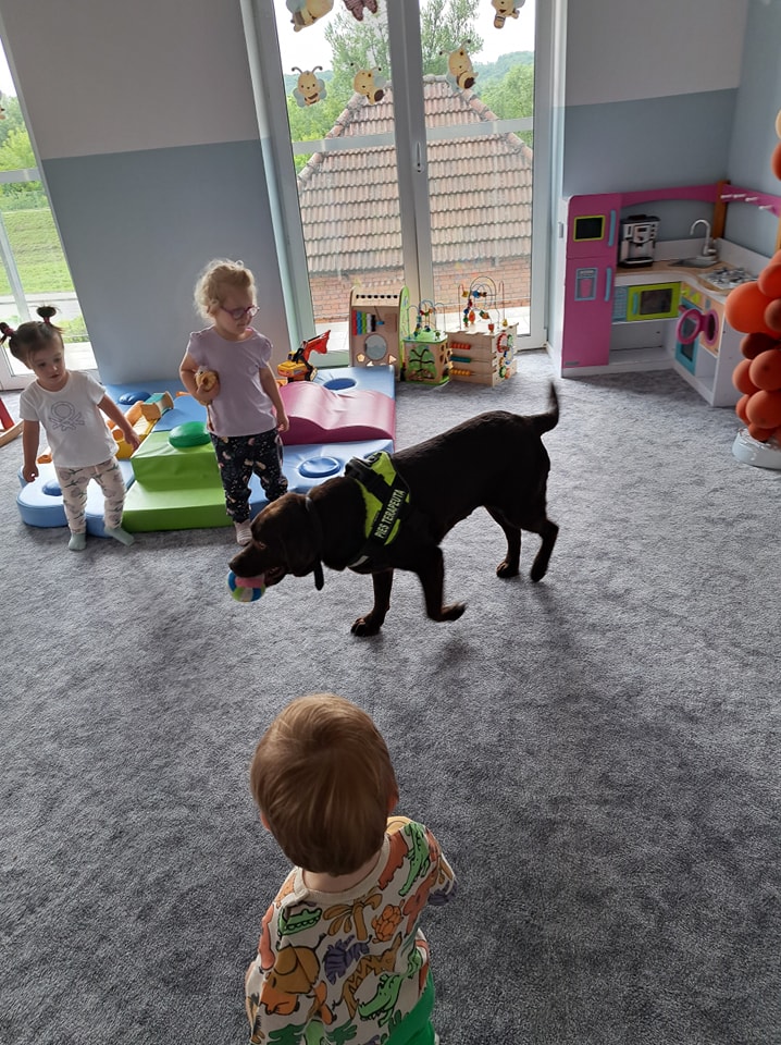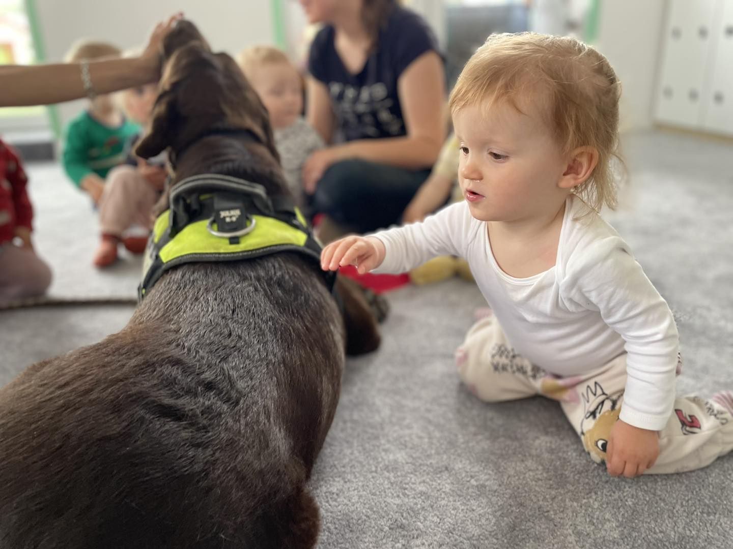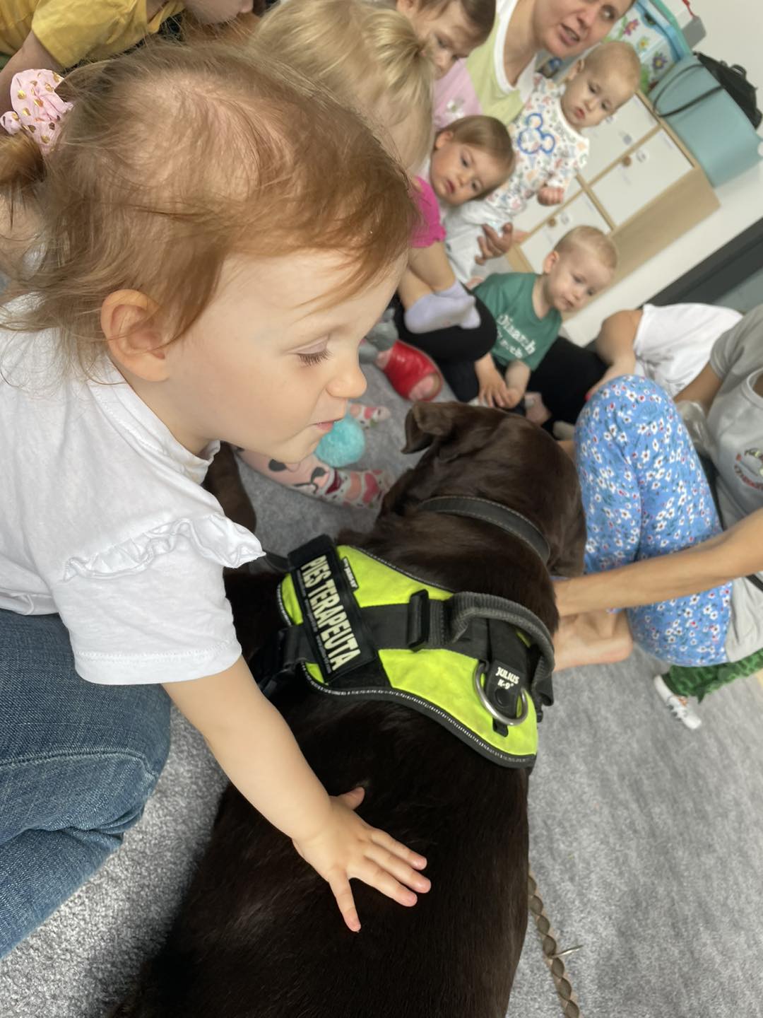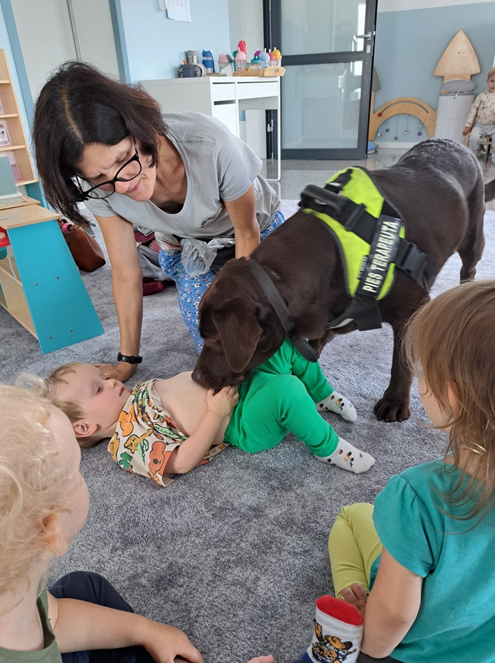 Nasze zajęcia u najmłodszych. Spotkanie s psem zawsze wzbudza spore emocje. Wśród maluszków czasami na początku nieśmiałość a czasem nawet strach. Po oswojeniu się z obecnością czworonoga następuje zaciekawienie i chęć dotyku. A  potem to jest już tylko oczekiwanie na następne spotkania