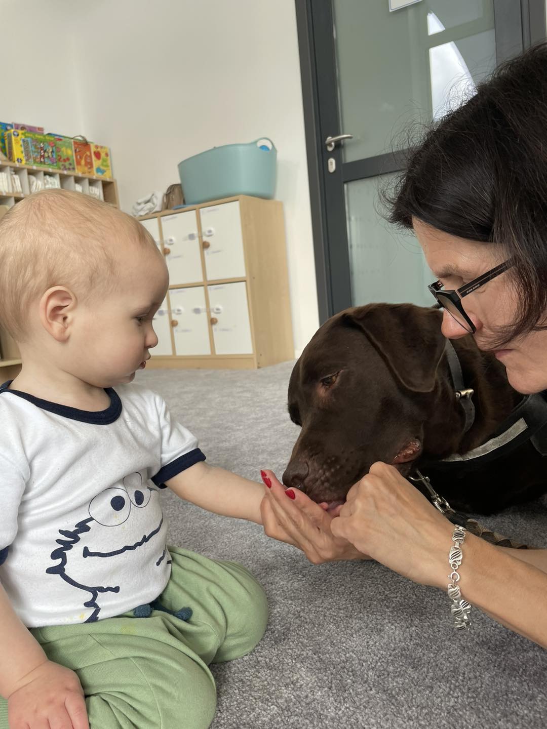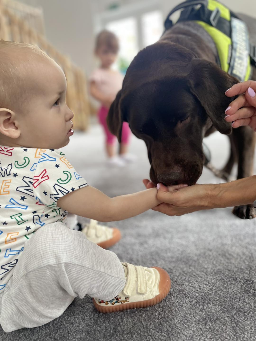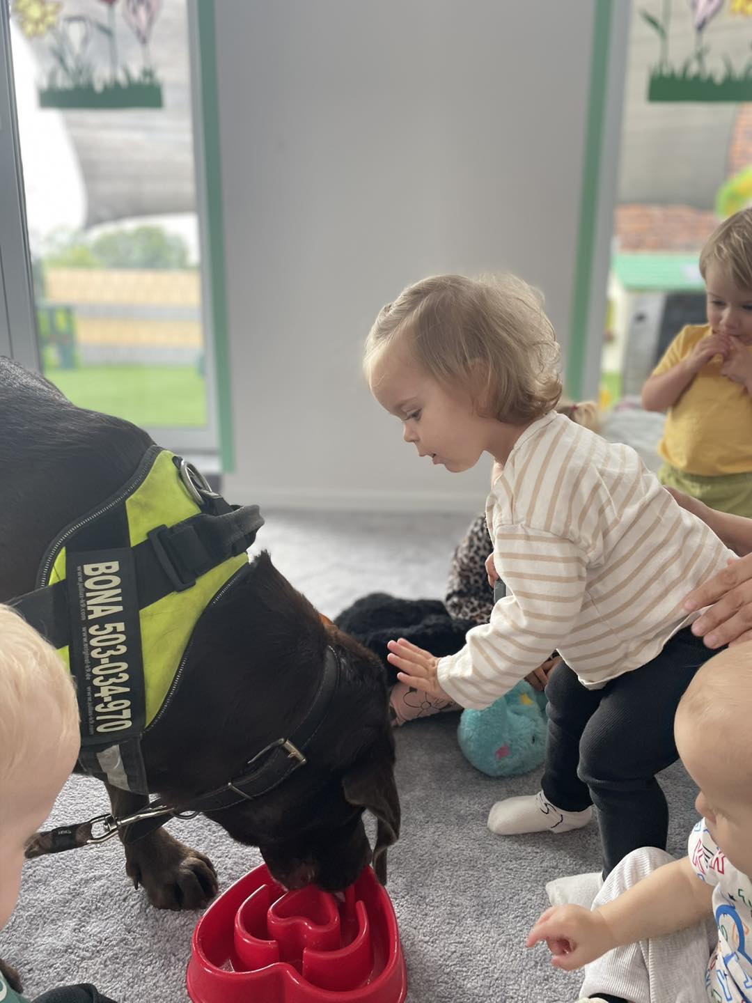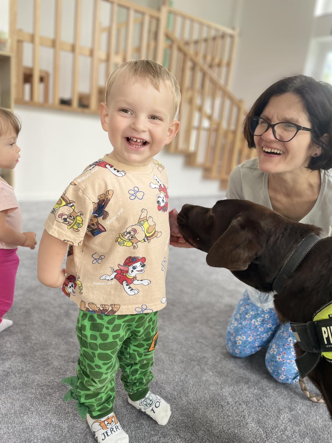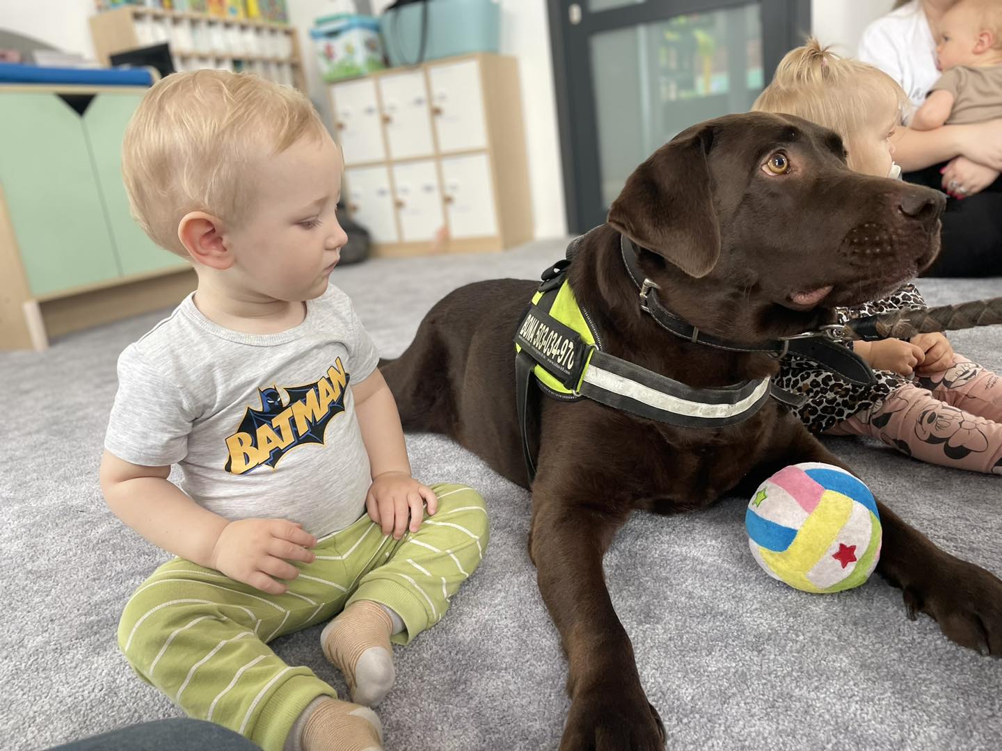 Nasze zajęcia u najmłodszych. Spotkanie s psem zawsze wzbudza spore emocje. Wśród maluszków czasami na początku nieśmiałość a czasem nawet strach. Po oswojeniu się z obecnością czworonoga następuje zaciekawienie i chęć dotyku. A  potem to jest już tylko oczekiwanie na następne spotkania