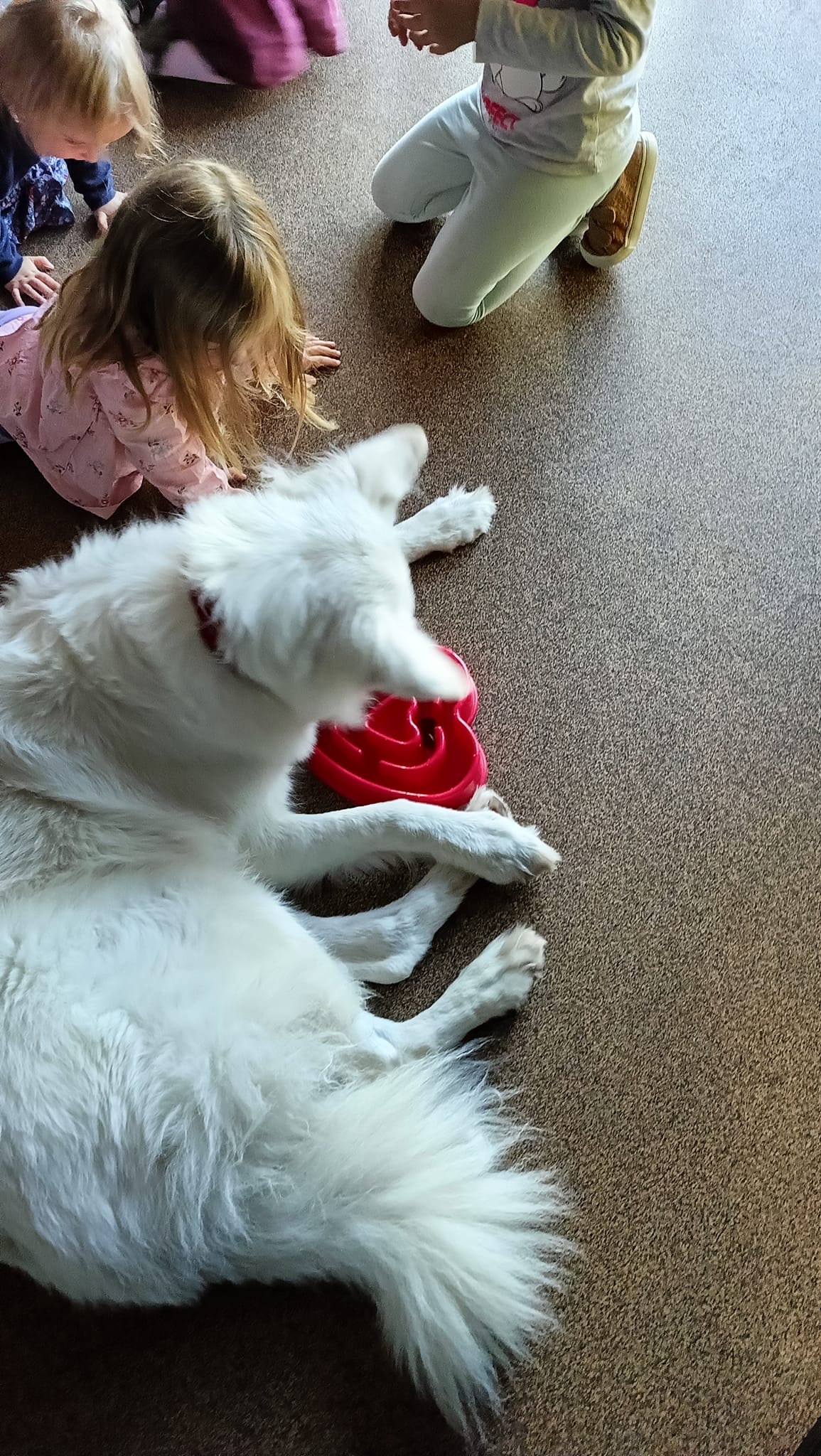 Bonki już nie ma , ale kontynuujemy rozpoczęte przez nią dzieło. Pierwszy raz po wakacjach, w nowym roku szkolnym w przedszkolu na zastępstwie była znana z poprzednich spotkań Tajga – biały owczarek szwajcarski. W kolejce już czeka Tokio. Psiejsko Czarodziejsko działa