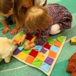 Dla tak ciekawych świata dzieci warto było wybrać się na zajęcia z Tokio. Była to już nasza kolejna wizyta. Najpierw odwiedzała dzieciaki nasza czekoladowa Bona, potem chwilowo biały owczarek szwajcarski Tajga. Teraz wraz z Tokio bywamy regularnie raz w miesiącu.