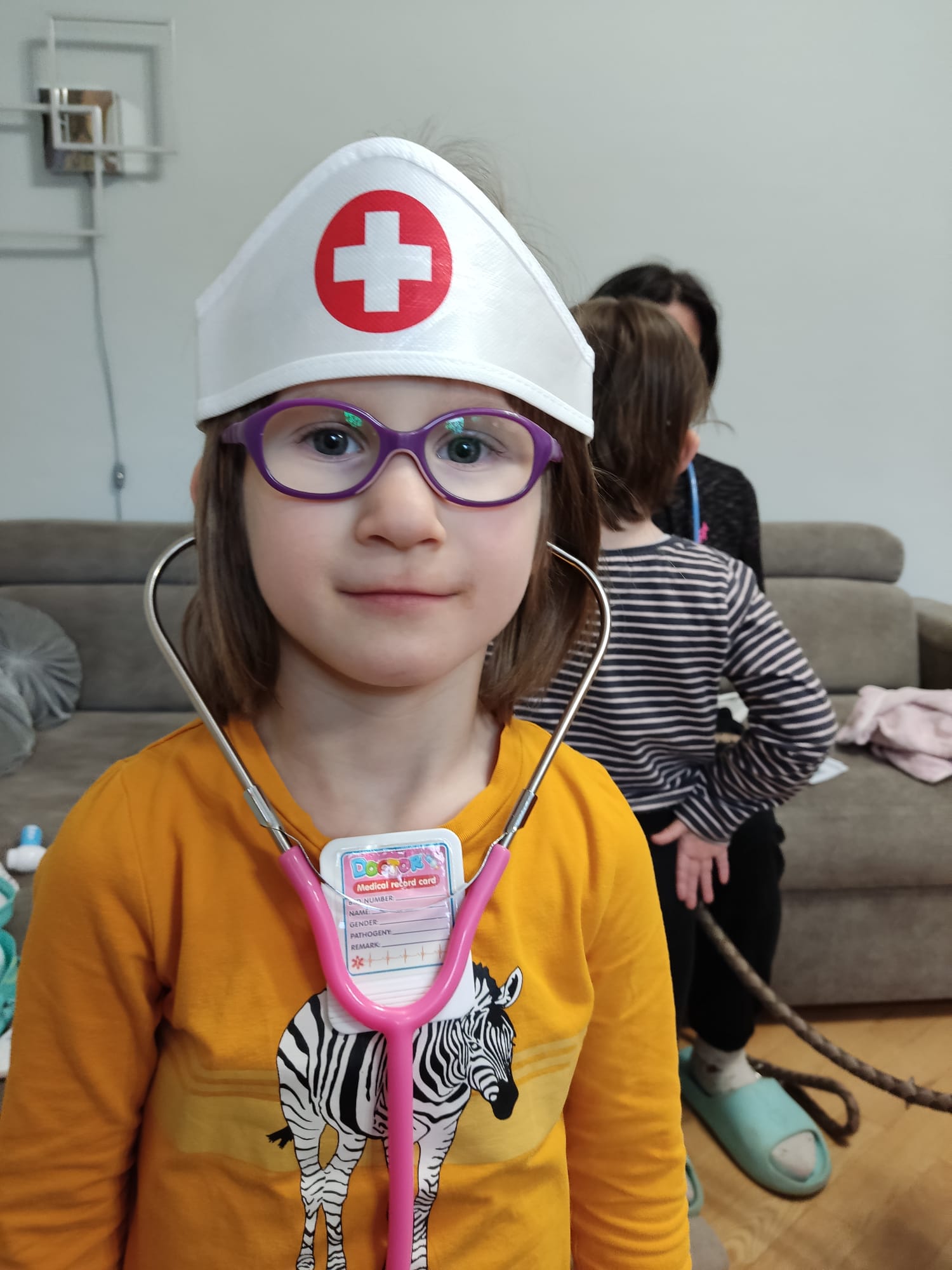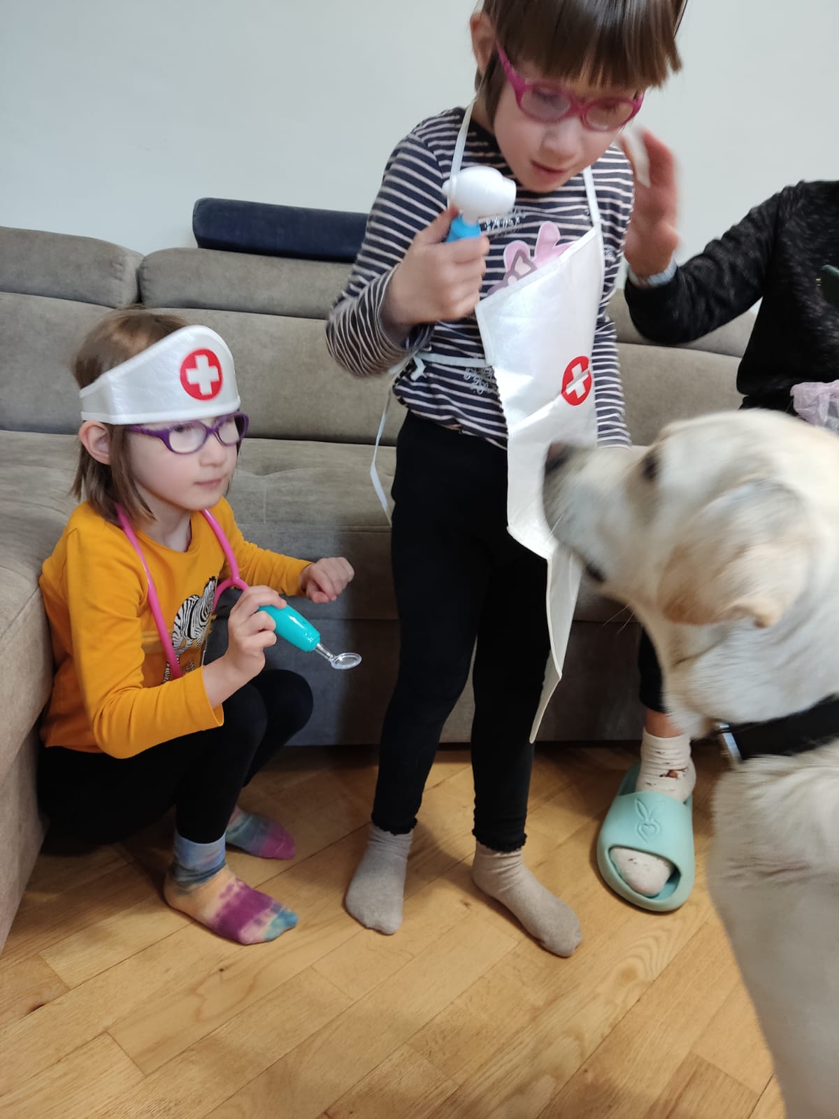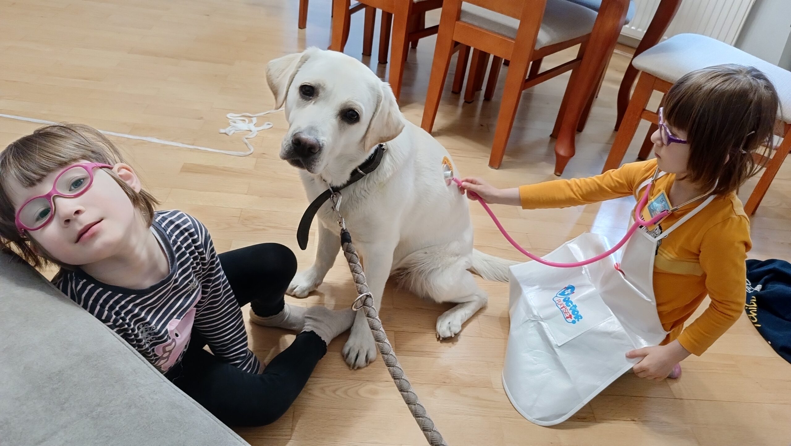 Lekarki przeprowadziły naszej Tokio szereg badań medycznych, takich jak: badanie uszu otoskopem, gardła, zębów, osłuchiwanie stetoskopem. Ponadto, zostałyśmy profesjonalnie obandażowane a Tokio została również zaszczepiona , przy użyciu prawdziwej strzykawki!
