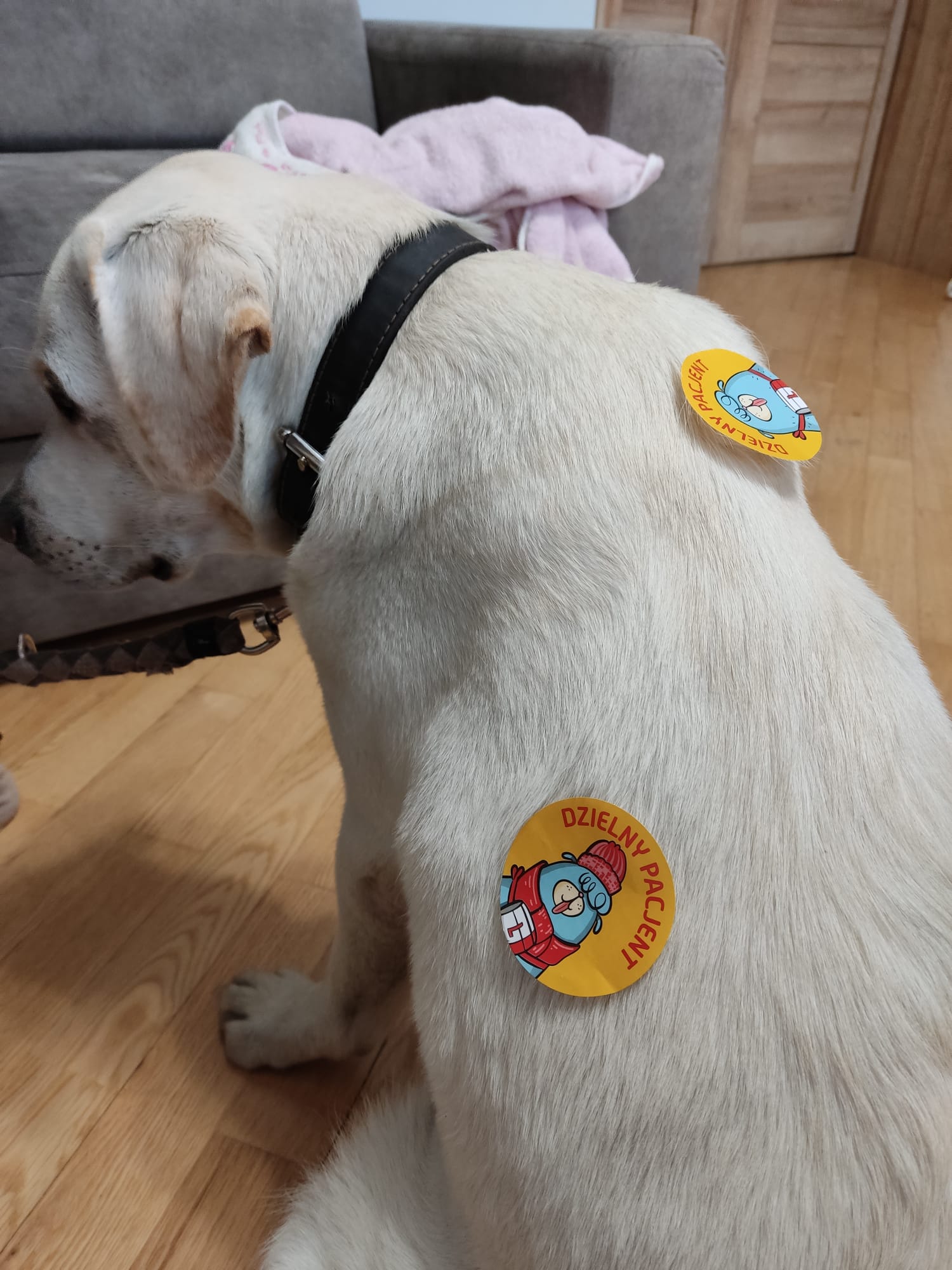 Panie lekarki były w pełni przygotowane, działały szybko, sprawnie i bez stresu dla pacjenta. Oczywiście na koniec wizyty lekarskiej Tokio otrzymała naklejki pt. „dzielny pacjent”.