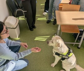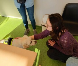 Studentów interesowała dogoterapia „od kuchni”. Była to okazja, by opowiedzieć trochę na temat czym jest animaloterapia ogólnie i szerzej o dogoterapii.