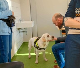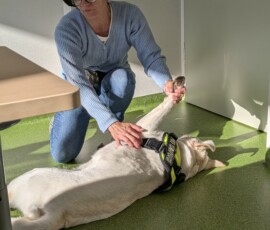 Omówiono wymogi względem dogoterapeuty, jego wykształcenia i umiejętności, aby móc prowadzić terapię z udziałem psa.