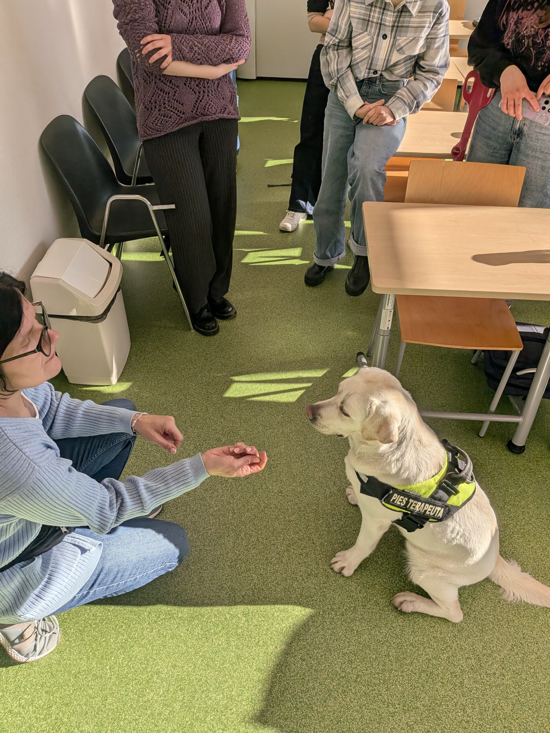 Studentów interesowała dogoterapia „od kuchni”. Była to okazja, by opowiedzieć trochę na temat czym jest animaloterapia ogólnie i szerzej o dogoterapii.