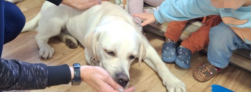 Kolejne nasze zajęcia żłobkowe. Staramy się wraz z Tokio przełamywać strach przed psami już u maluszków. I chyba nam się udaje? 🙂