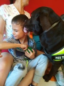oddziaływanie na sferę emocjonalną przez przełamanie bariery niepewności przed kontaktem z psem,